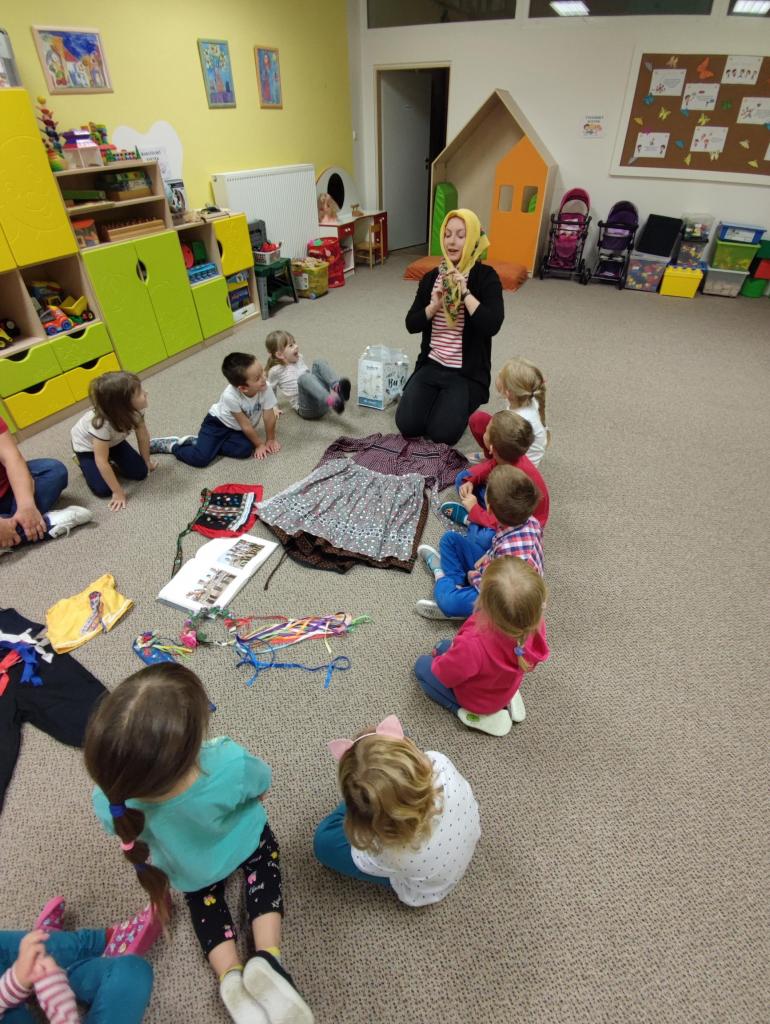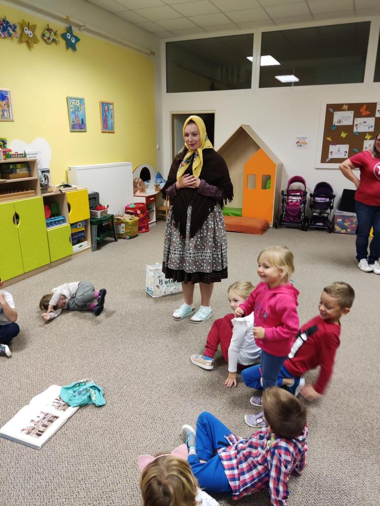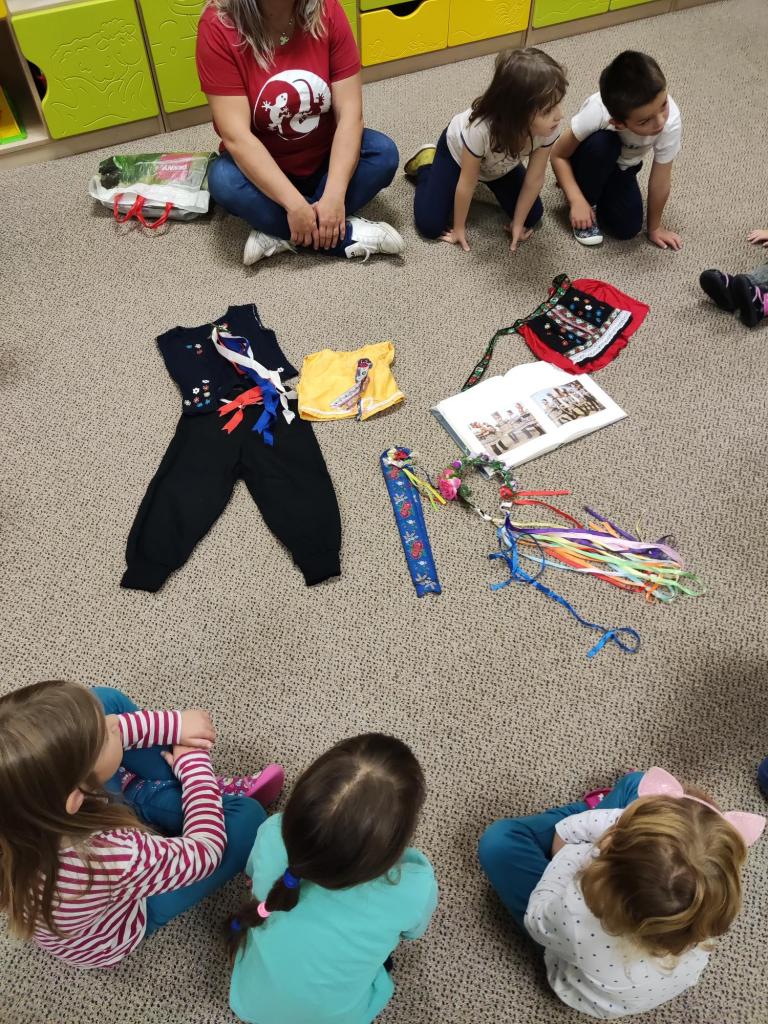 Děti si vybarvily státní vlajku, ukazovali jsme si různé kroje a někteří si je i vyzkoušeli.