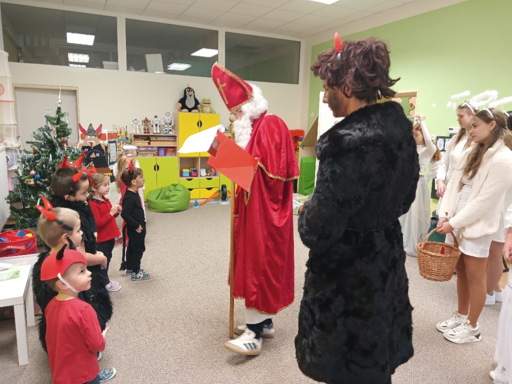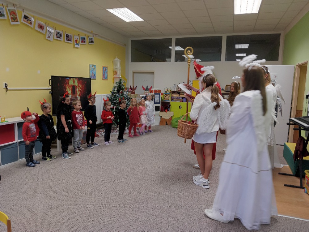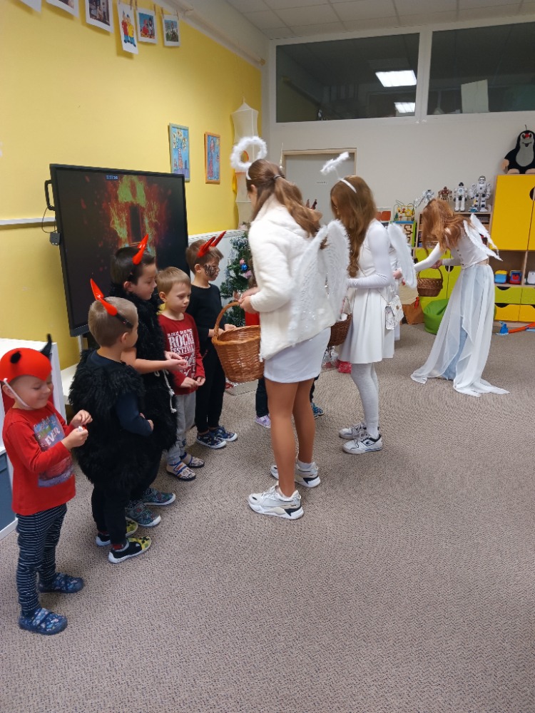Nenechali jsme se zaskočit návštěvou Mikuláše s andělem a čerty. Naši šikulové ze školky si připravili básničky i písně a zasloužili si od andílka odměnu.