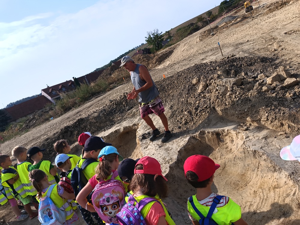 Třída MŠ Diváky si udělala malý výlet do Nikolčic na vykopávky. Viděli jsme archeologa při práci a už víme, co jsou to "sídlištní jámy."