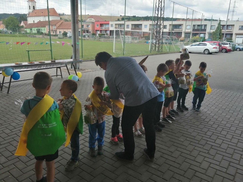 28. 6. 2023 jsme slavnostně naše předškoláky ocenili dárky i šerpou a pan starosta je pasoval do řad školáků.