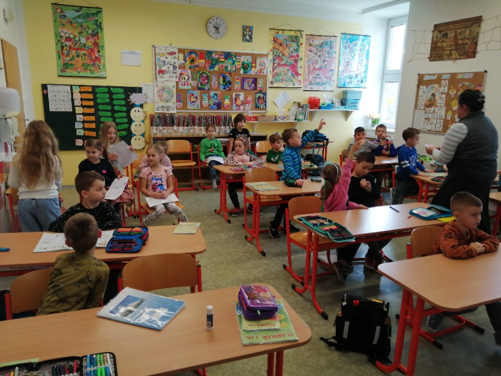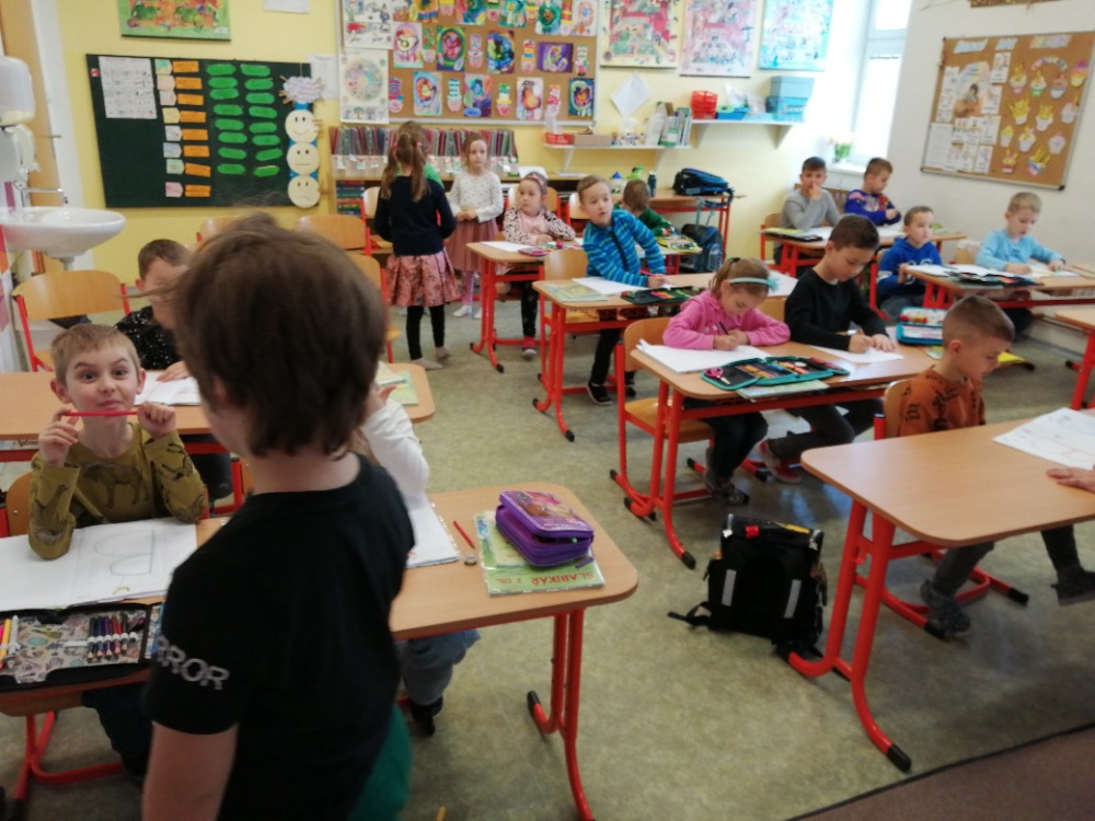 25. 3. 2024 si naši předškoláci vyzkoušeli být školáky v 1. třídě.