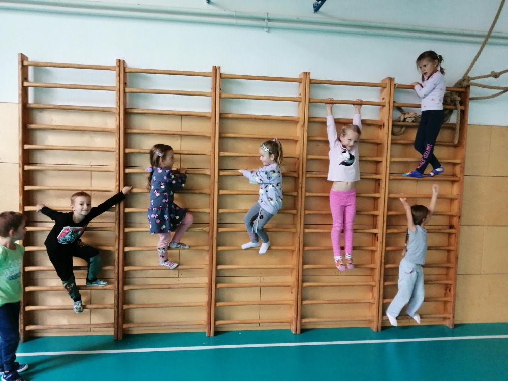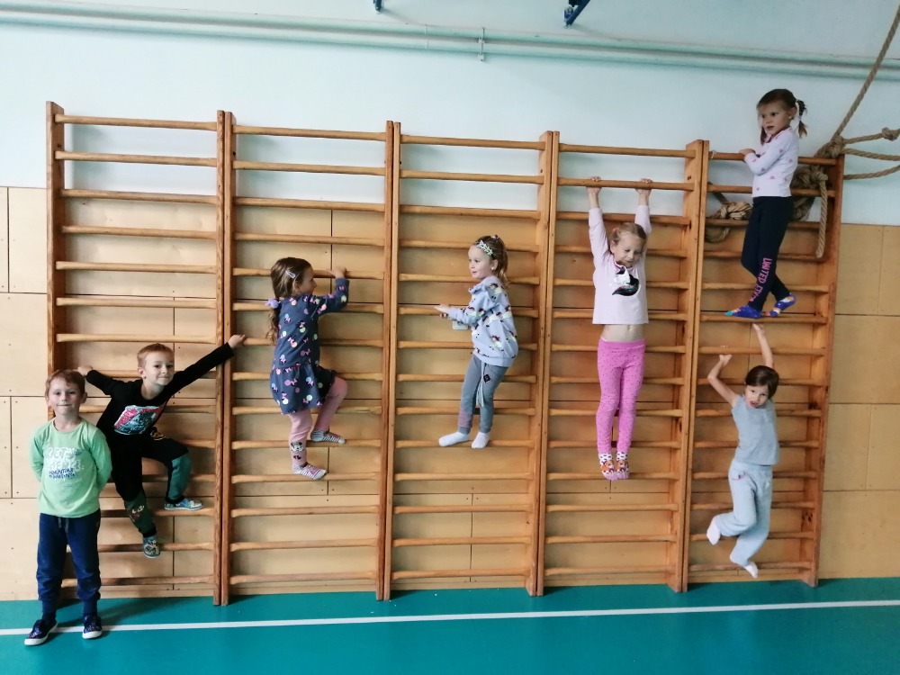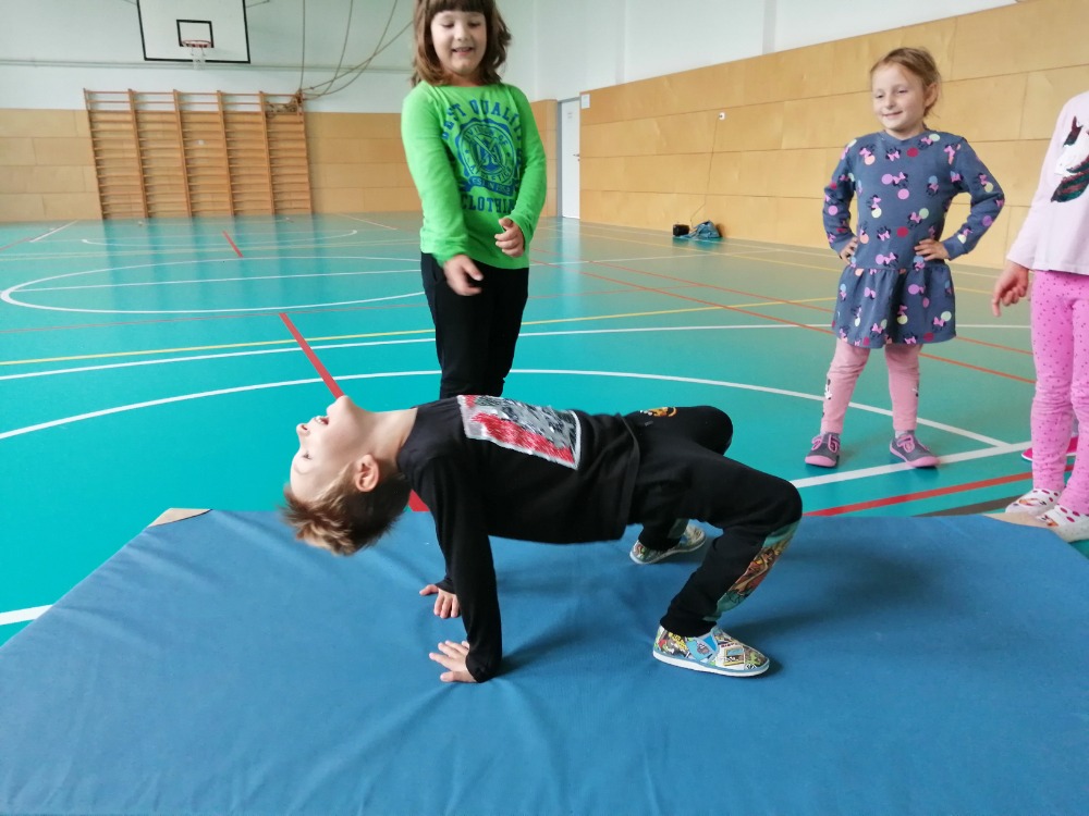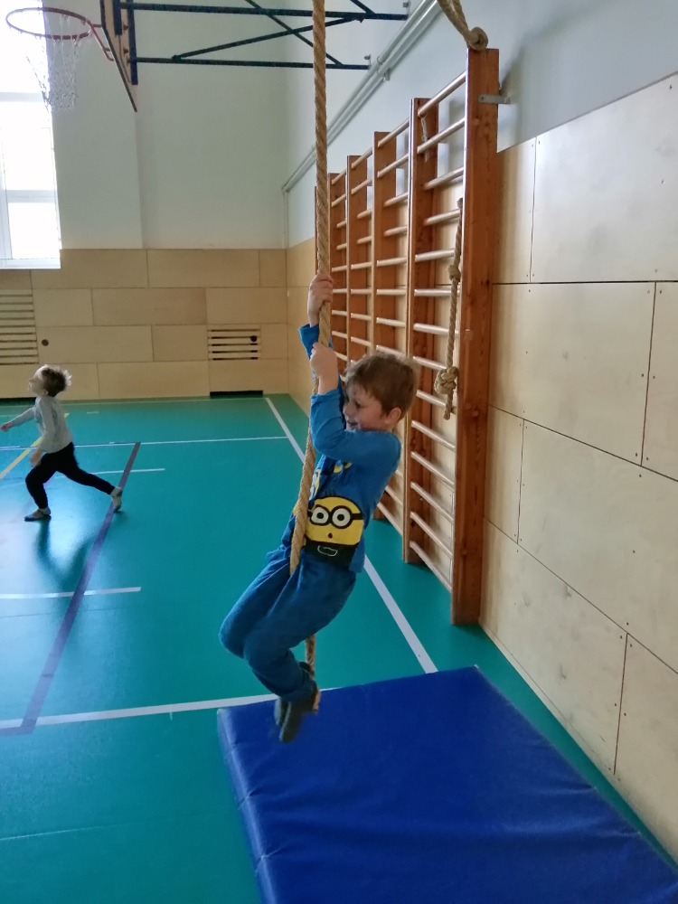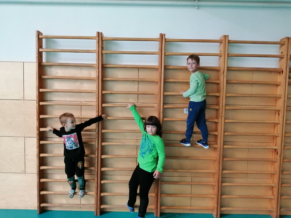 Dnes se konečně předškoláci dočkali tolik očekávaných aktivit v tělocvičně. Nejdříve jsme vyrazili na vycházku, ale zahnal nás velký černý mrak, ze kterého začalo pozvolna pršet.
