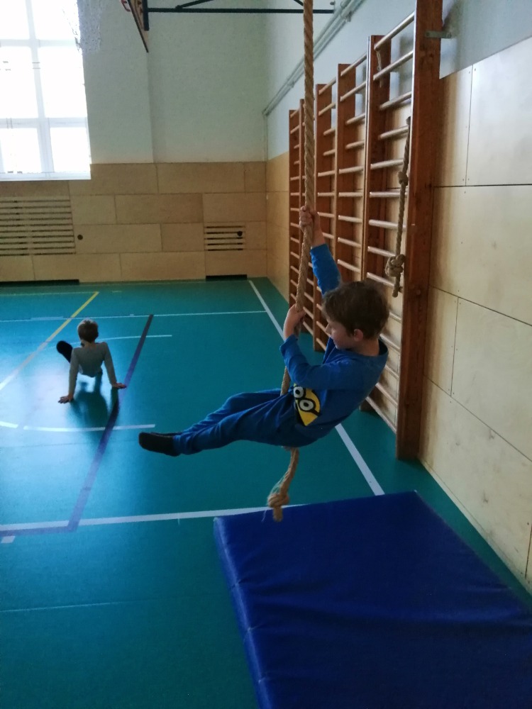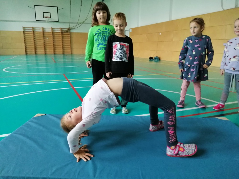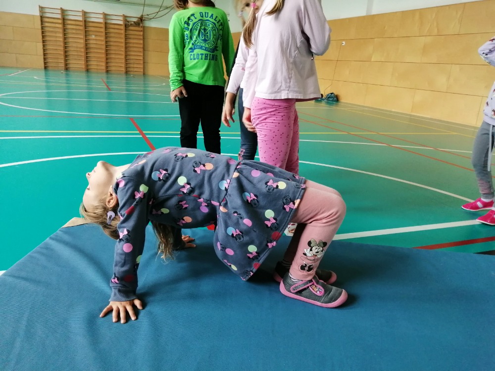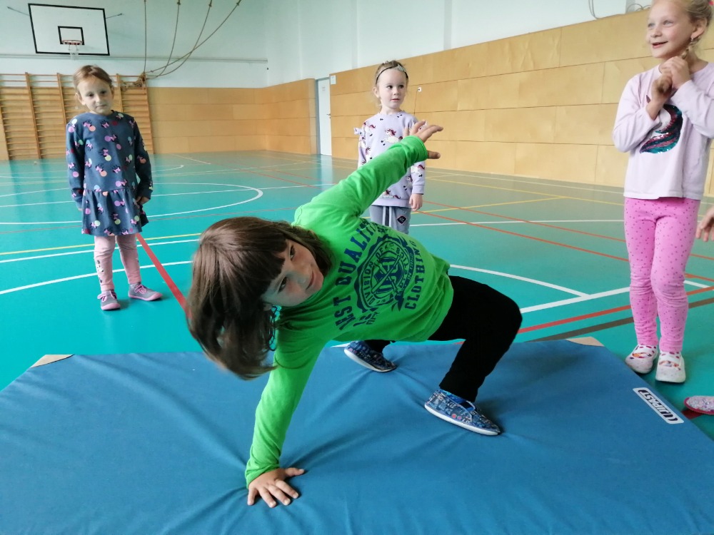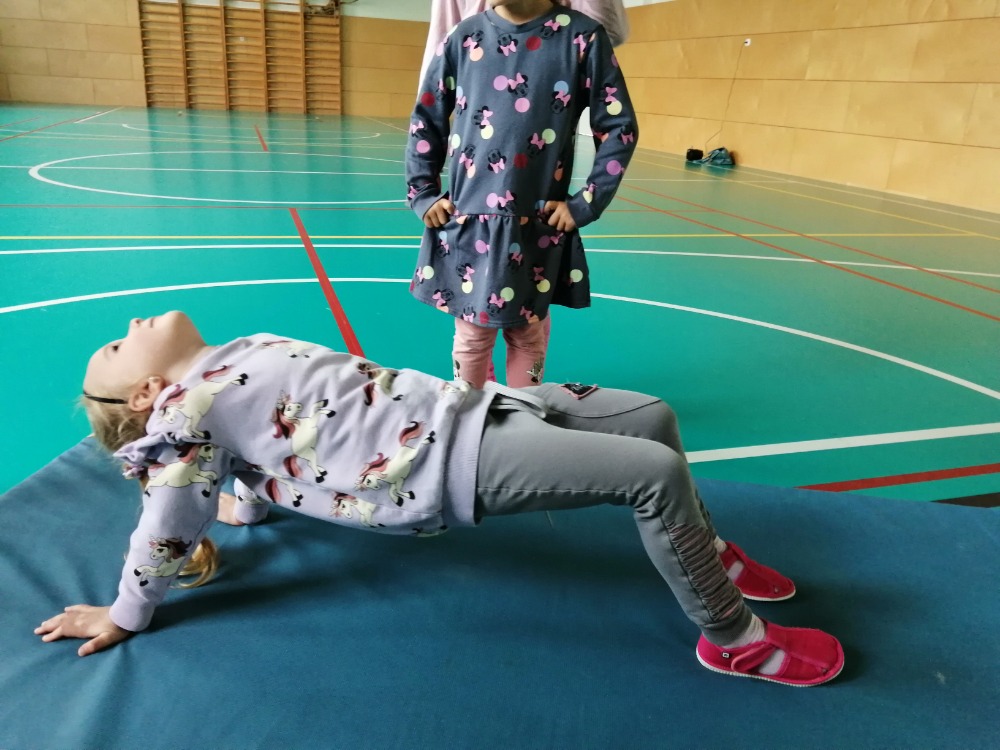 Dnes se konečně předškoláci dočkali tolik očekávaných aktivit v tělocvičně. Nejdříve jsme vyrazili na vycházku, ale zahnal nás velký černý mrak, ze kterého začalo pozvolna pršet.