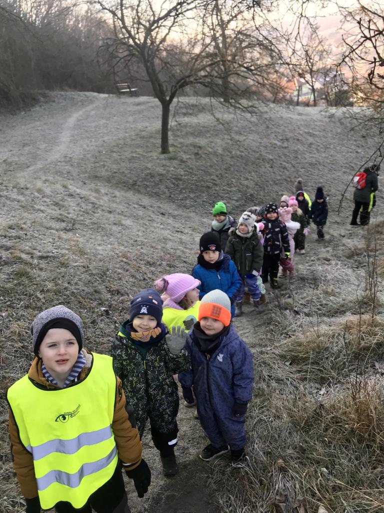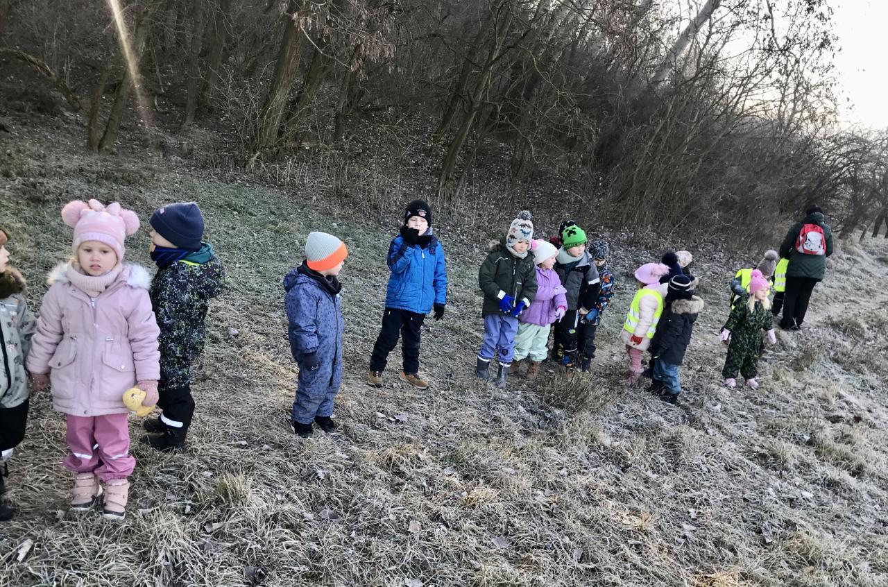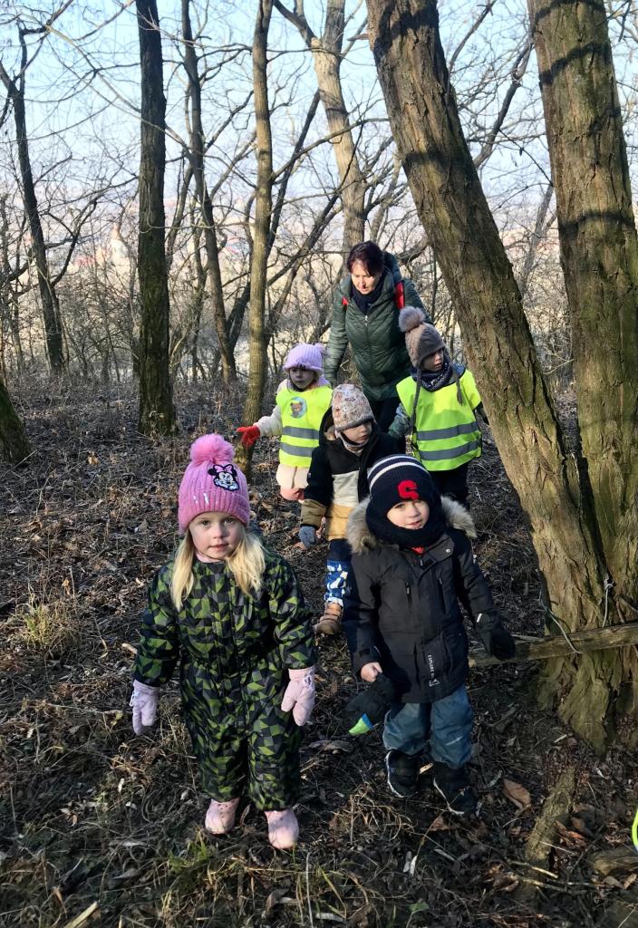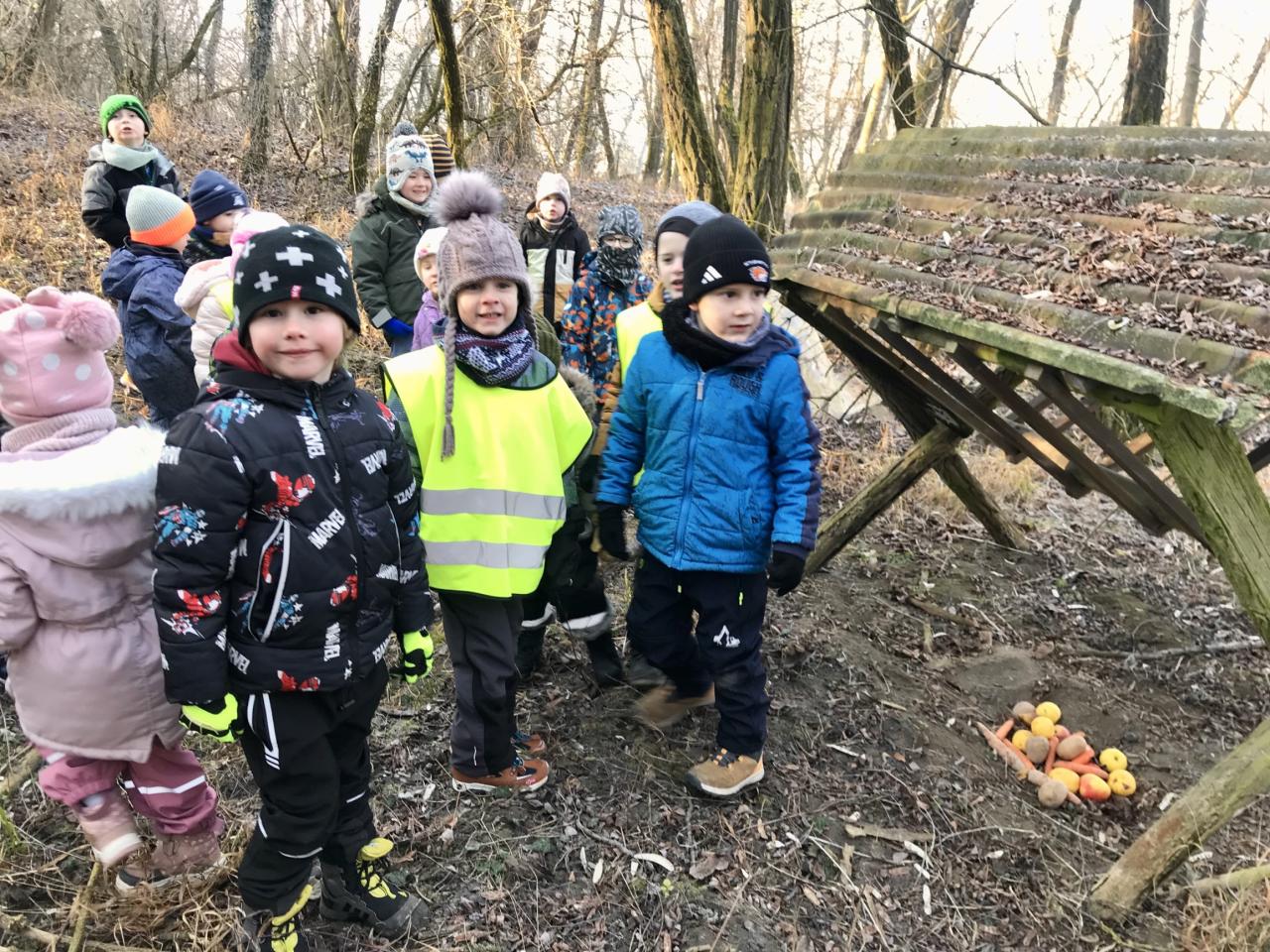 Motýlci a Sovičky se dne 5.2.2025 vypravili do lesa, aby přinesli krmení.