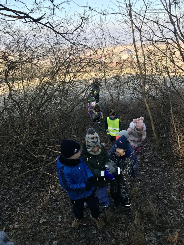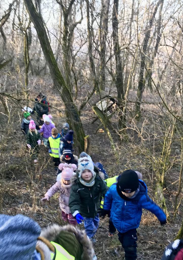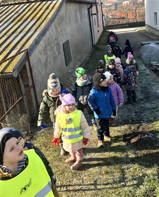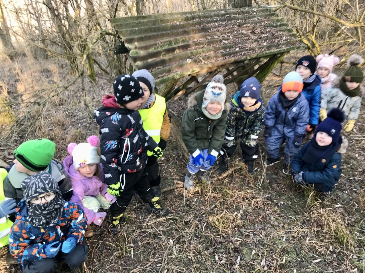 Motýlci a Sovičky se dne 5.2.2025 vypravili do lesa, aby přinesli krmení.