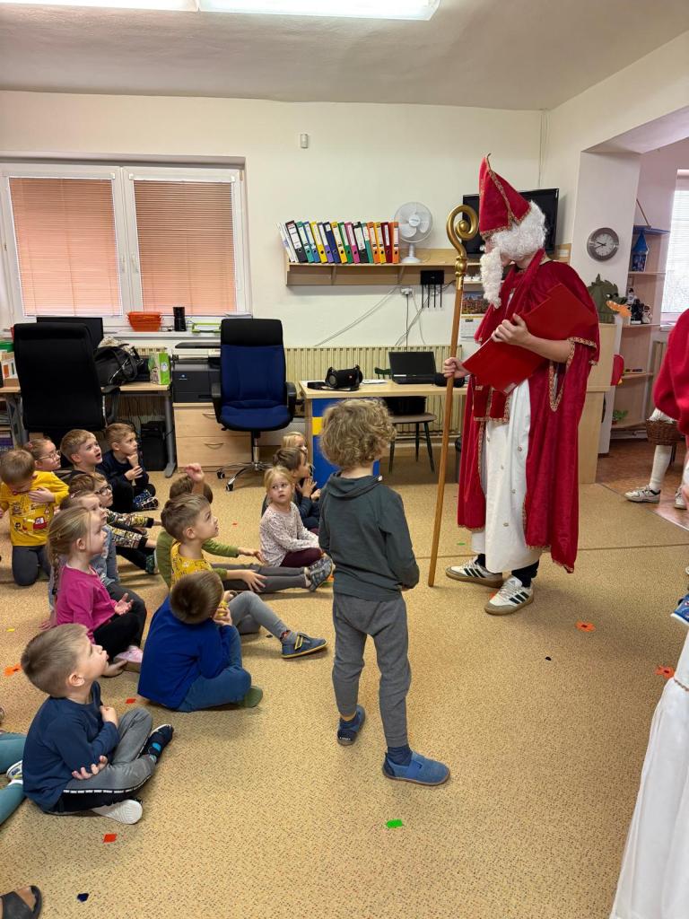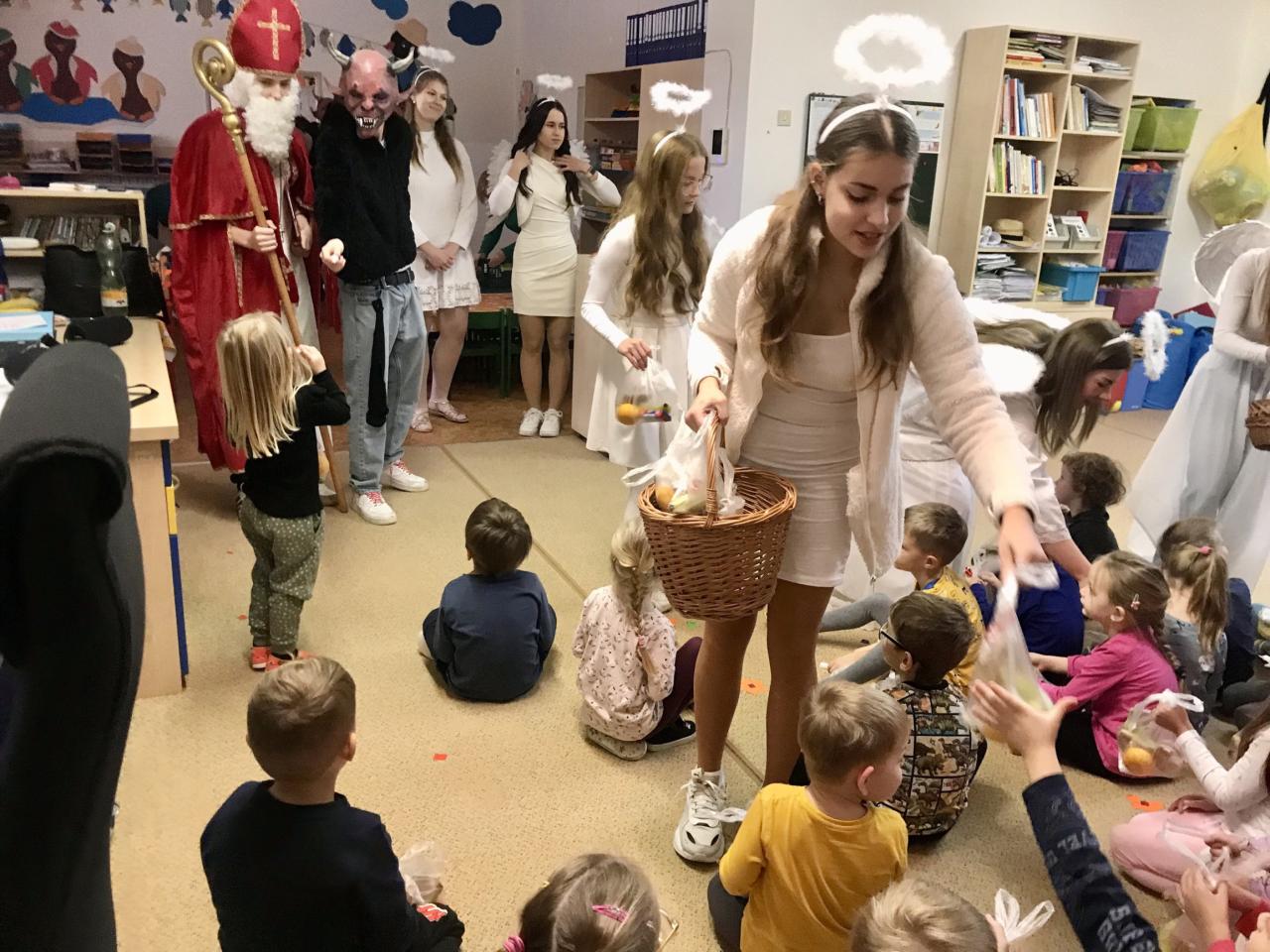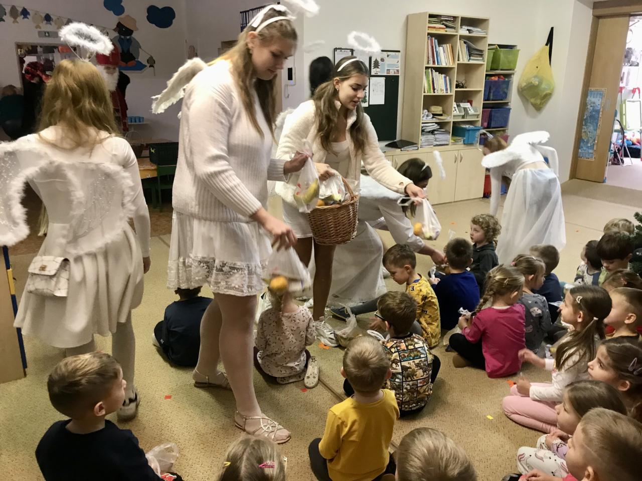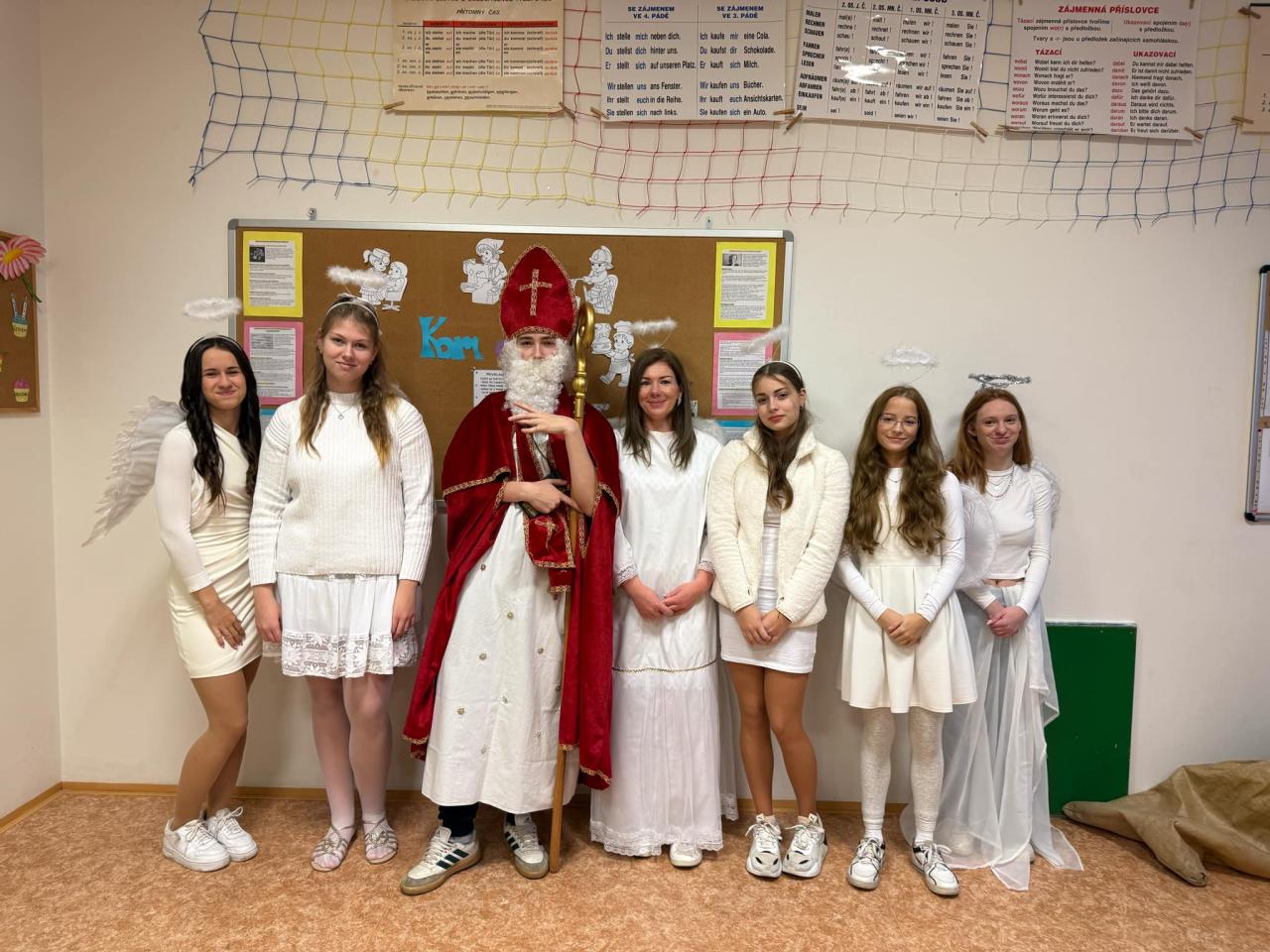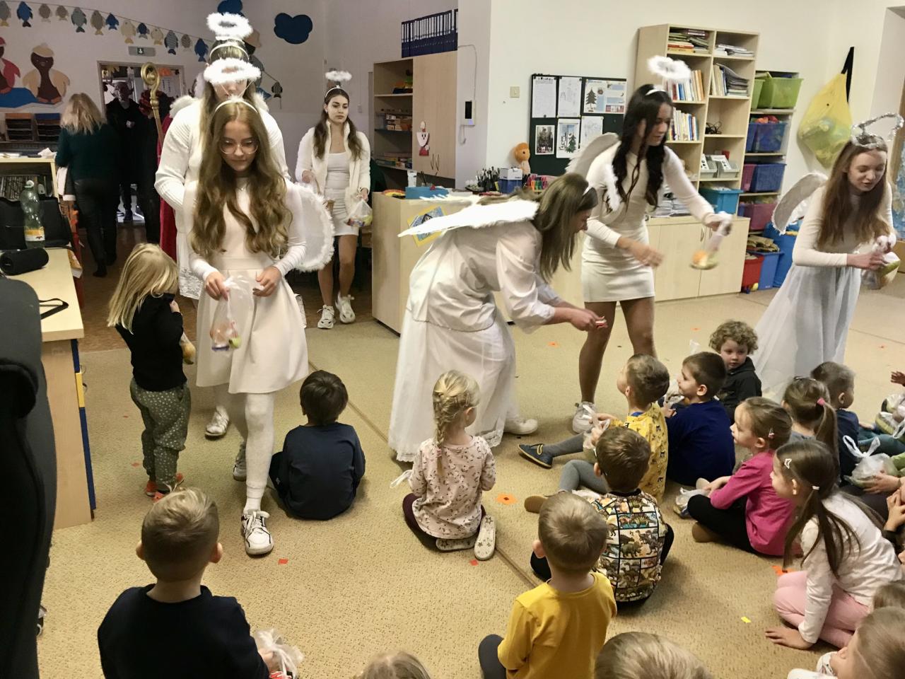 Mikuláš s čerty a anděly v podání 9.třídy navštívili naši školu a školky ve čtvrtek 5. 12. 2024 dopoledne.
