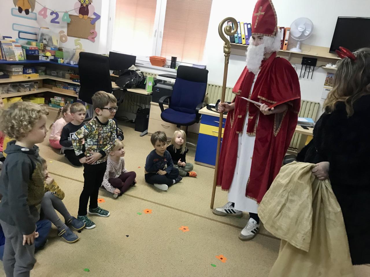 Mikuláš s čerty a anděly v podání 9.třídy navštívili naši školu a školky ve čtvrtek 5. 12. 2024 dopoledne.