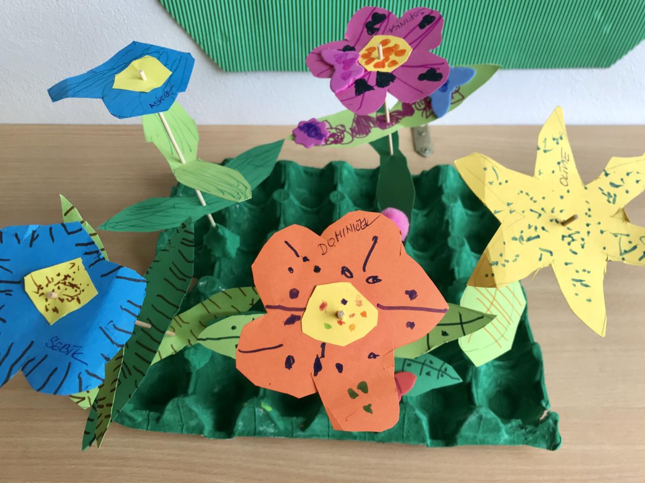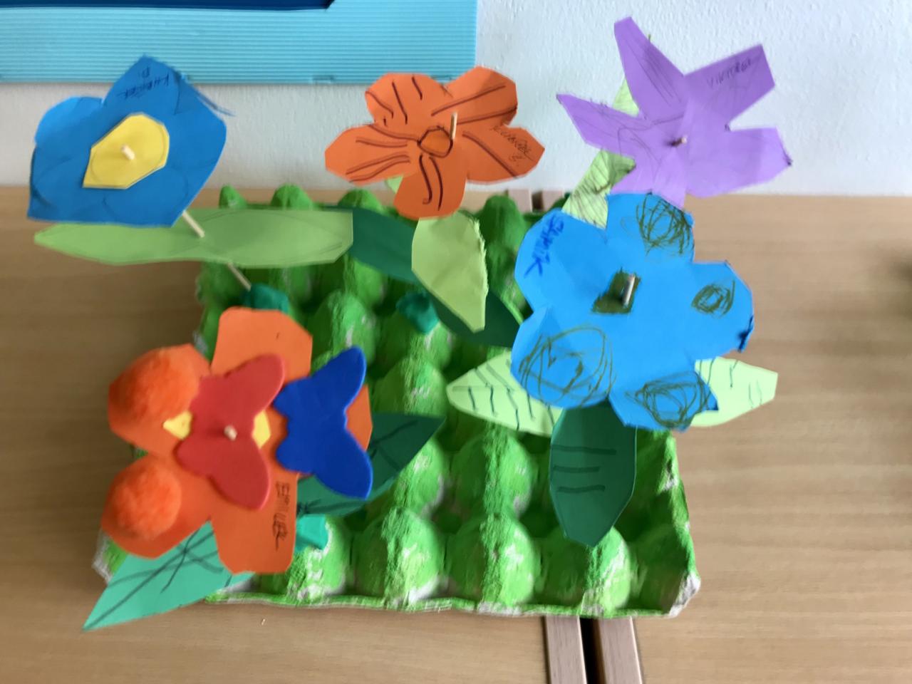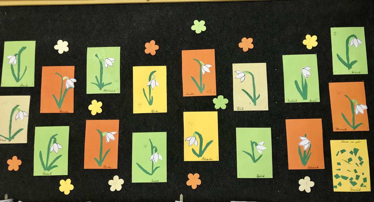 Děti v MŠ Motýlci přivolávají jaro krásnou květinovou výzdobou.