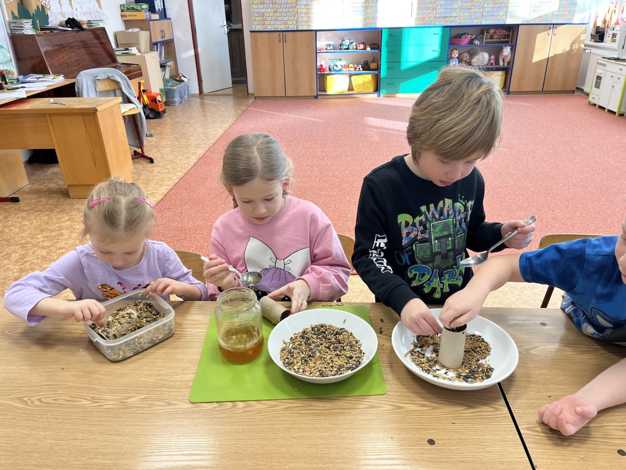 MŠ sovičky - výroba krmítek pro ptáky, venkovní aktivity