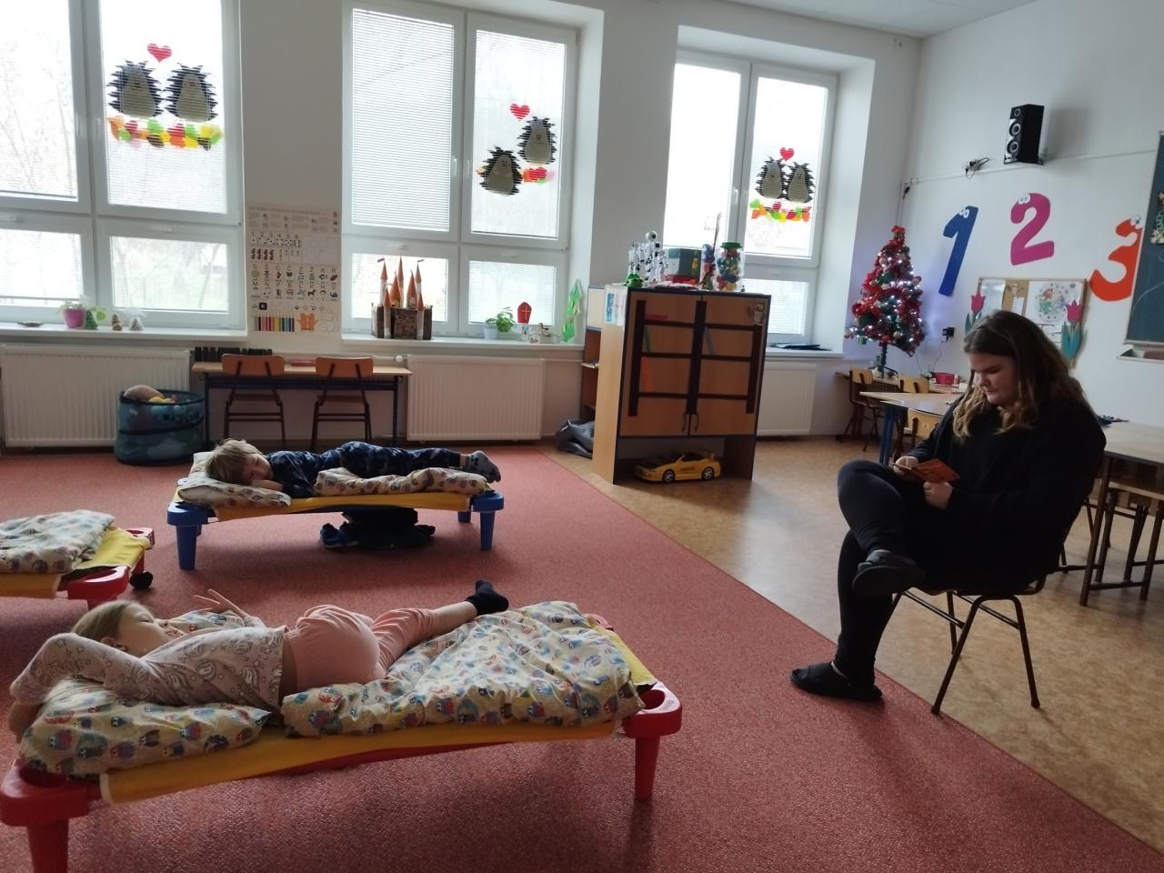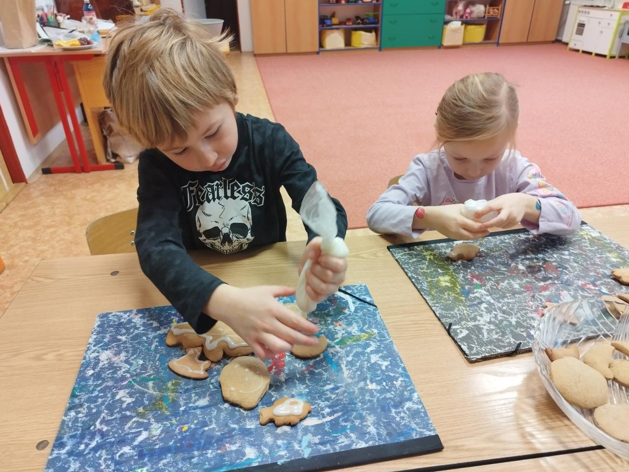 Dne 13. 12. jsme měli s dětmi nabitý den. Zdobili jsem perníčky, vyrazili na vycházku dát krmení zvířátkům, a nakonec nám přišla přečíst pohádku žákyně 9. třídy Petra Skopálová.