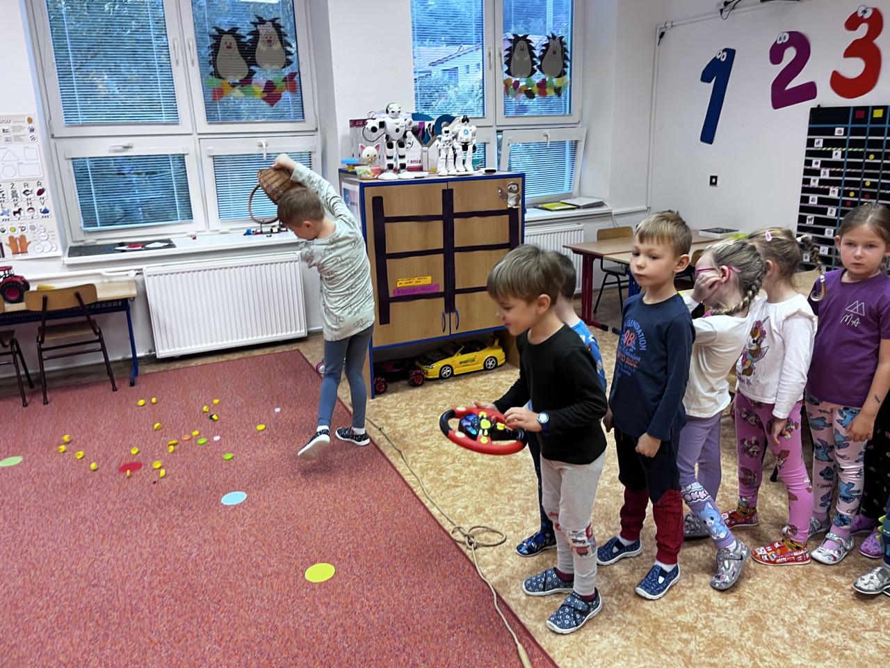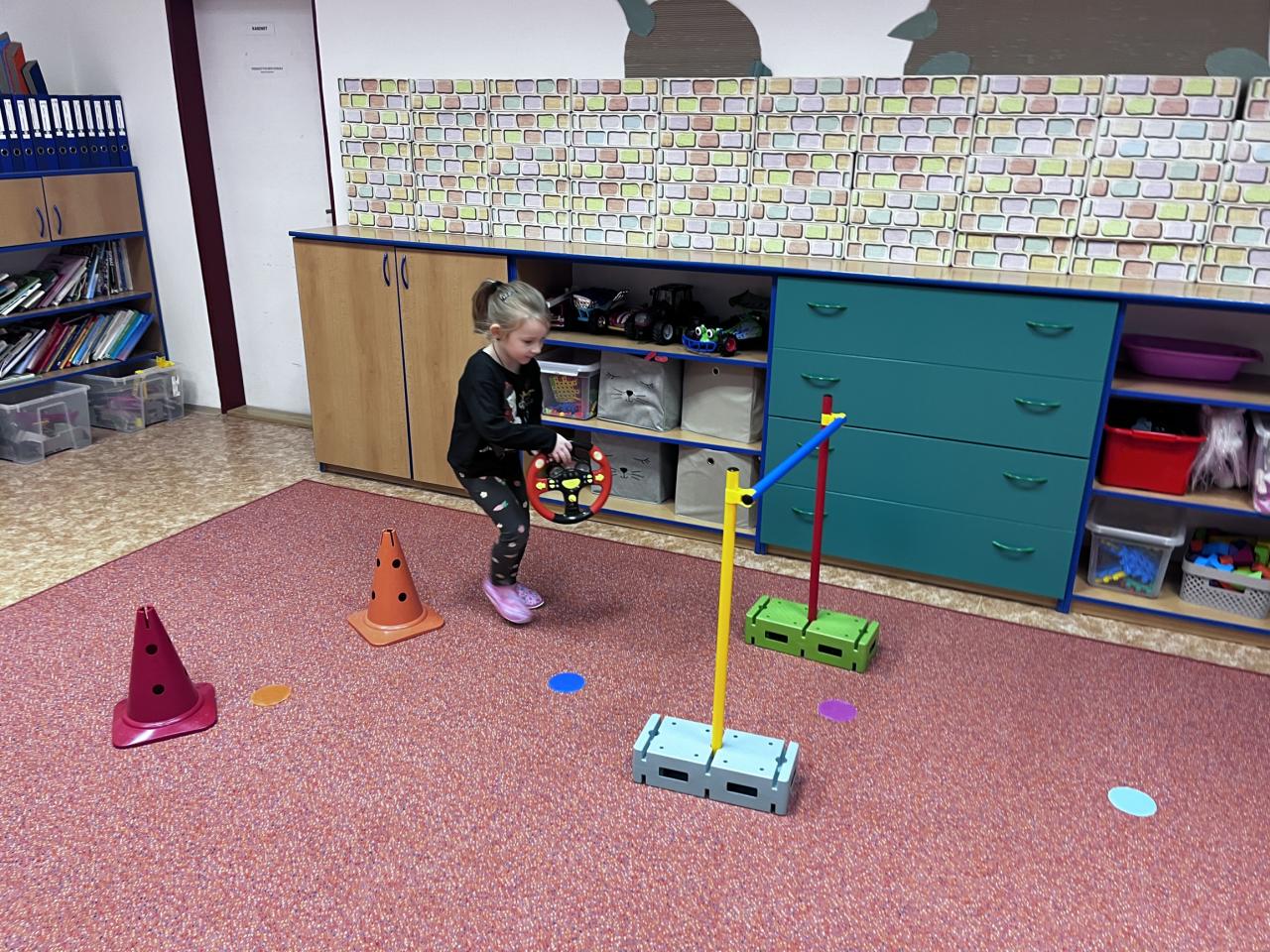 Překážková dráha u soviček na téma kombajn sklízí kukuřici.