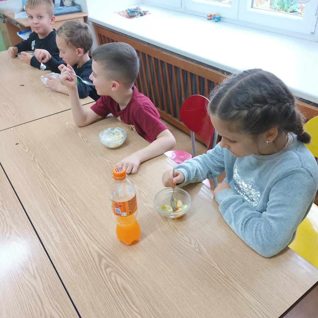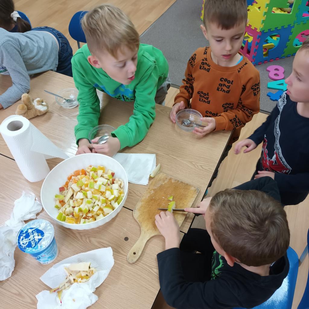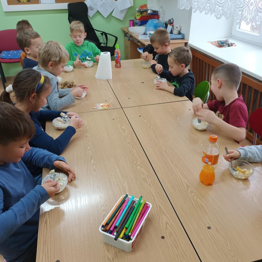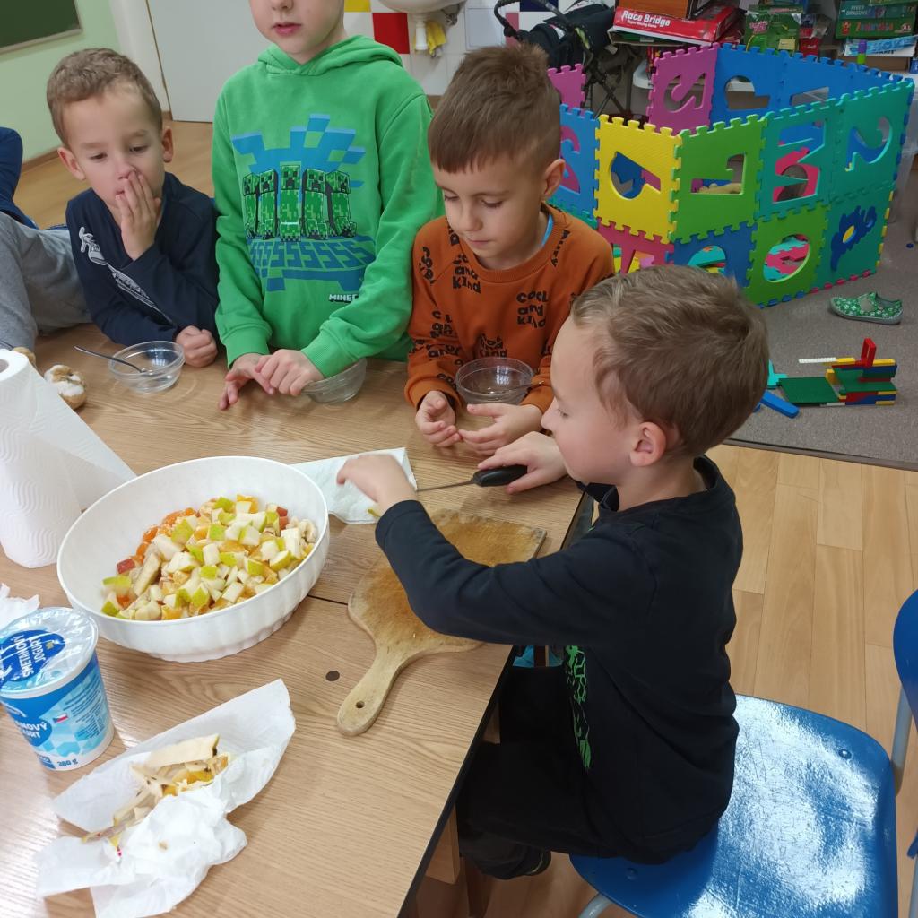 Dne 10.11.2023 proběhl v naší družině projektový den „Den ke zdraví“, a protože jsou děti tvořivé, samy si připravily velmi chutný ovocný salát a ovocný koktejl. Byla to mňamka .