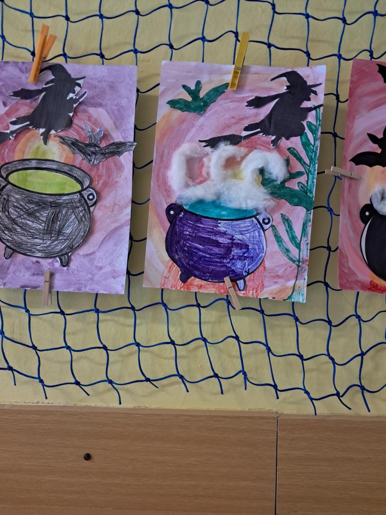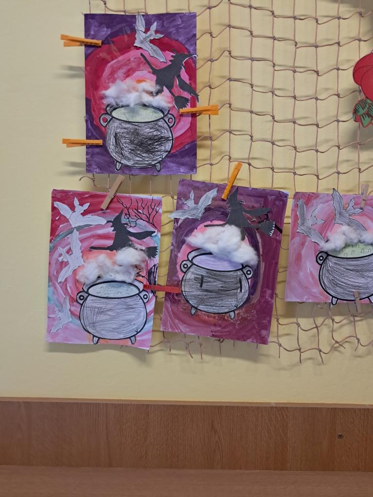 Dne 30.4.2025 proběhl oblíbený čarodějnický den. Šikovné čarodějky a čarodějové si vytvořili kotlík s lektvarem pomocí vodových barev, vaty a vystřižených siluet. Velmi zdařilá práce.
