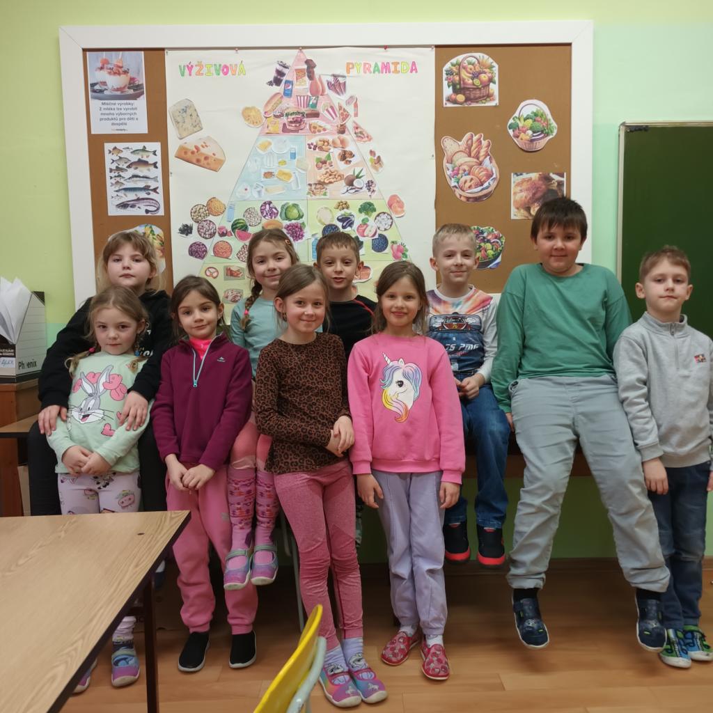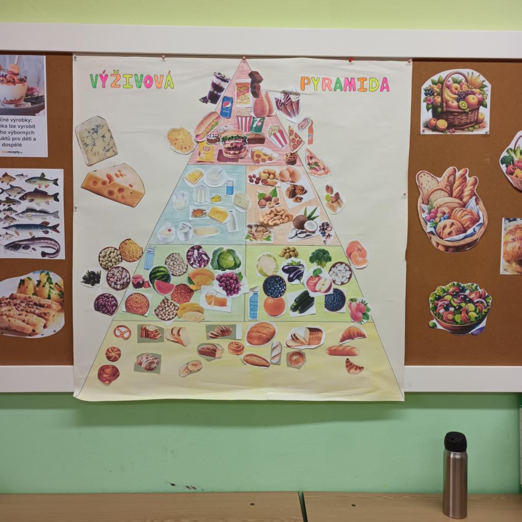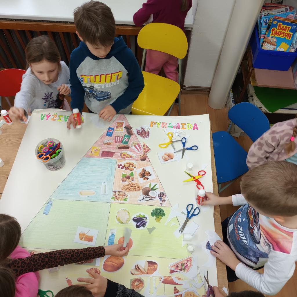Tento týden jsme se trochu blíž zabývali zdravým stravováním na téma "maminčina spíž" aneb příprava zdravého pokrmu. Děti si sestavily výživou pyramidu, podle svých představ. Myslím, že se jim zdařila na jedničku.