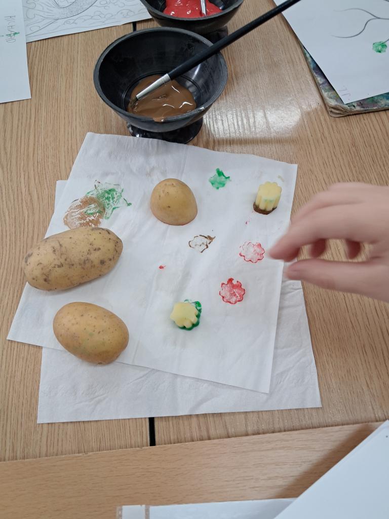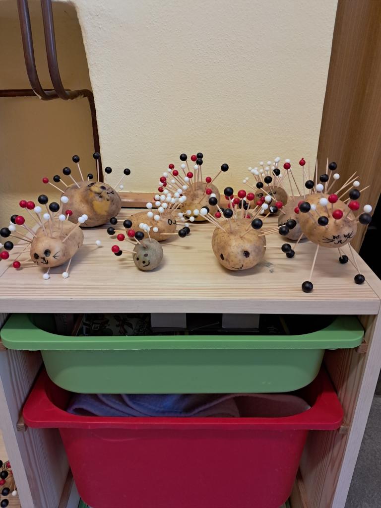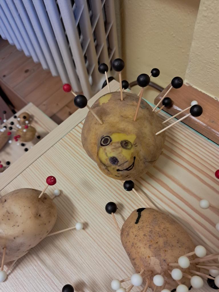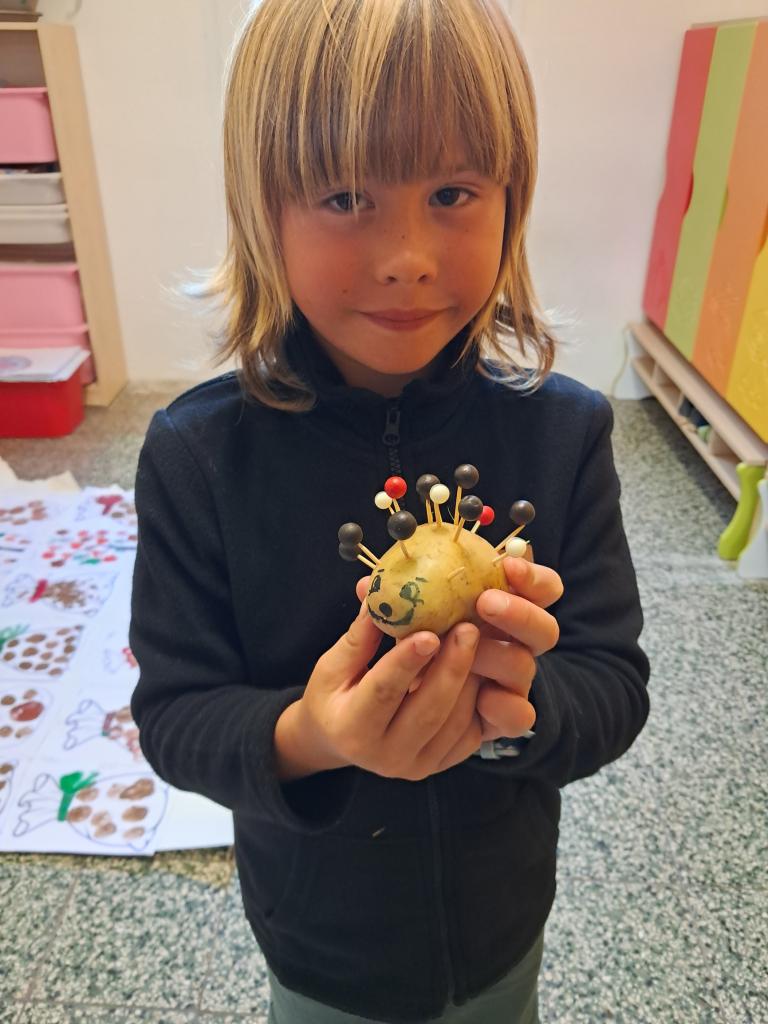 Včera, 18. 9. 2025, v rámci projektového dne, proběhla v naší družince "Bramboriáda". Děti si přinesly brambory (velké, malé, prťavé), ze kterých jsme si udělali "bramborová razítka" pomocí nichž vznikly krásné výtvory zbarvené do podzimu. Z těch "opuštěných" se podařili kouzelní ježečci.