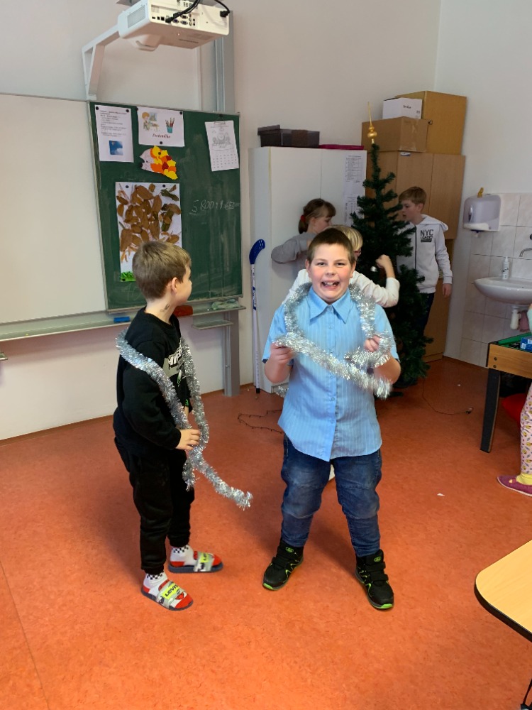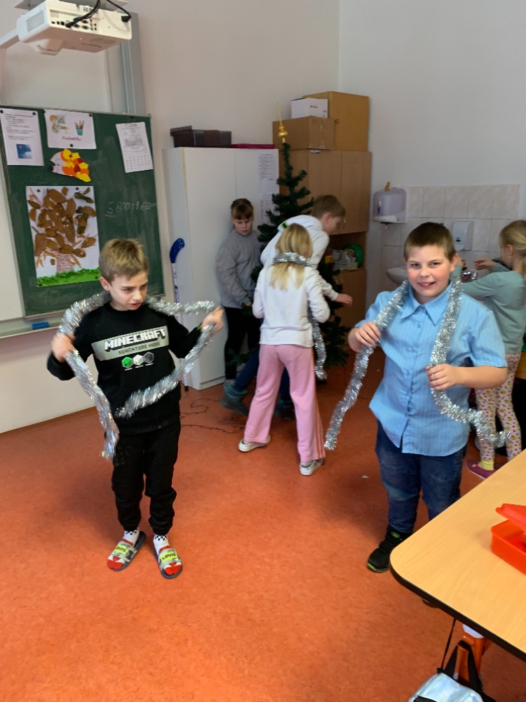 Zdobení vánočního stromečku, hrátky ve sněhu a jiné činnosti ŠD v prosinci.