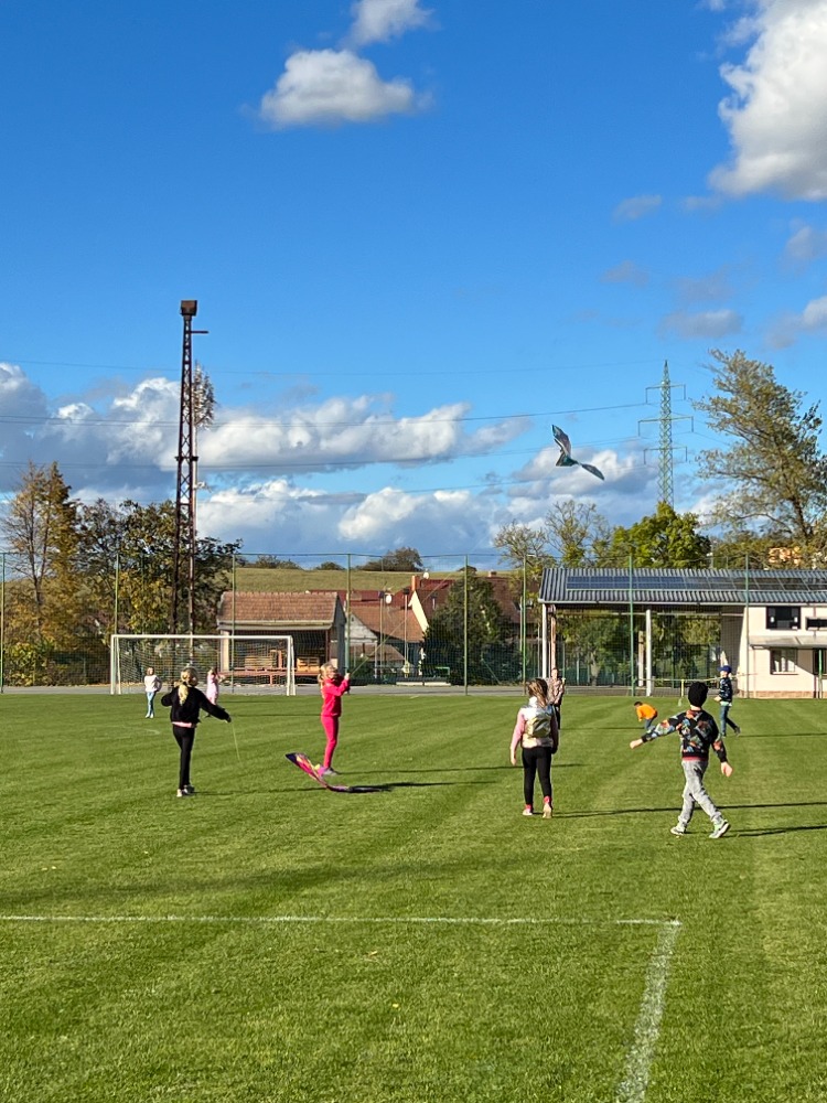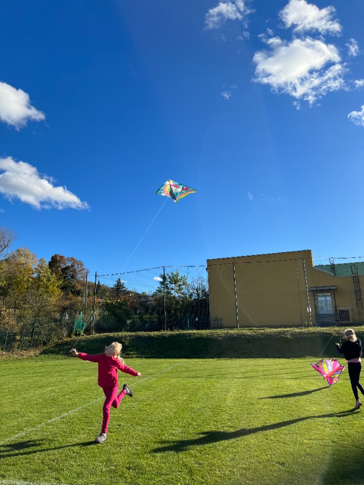 Družinová akce „Draci a dráčci“ se letos opět vydařila. Na školním hřišti jsme společně pouštěli draky, které si děti přinesly z domu. Poté následovalo tvoření dráčků z papíru. Moc se všem povedli!