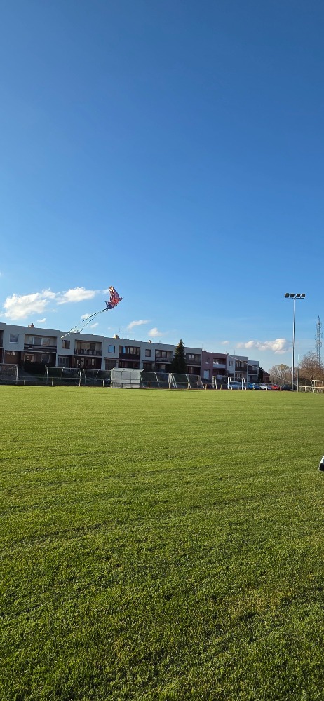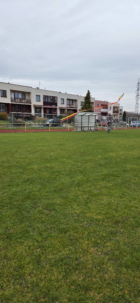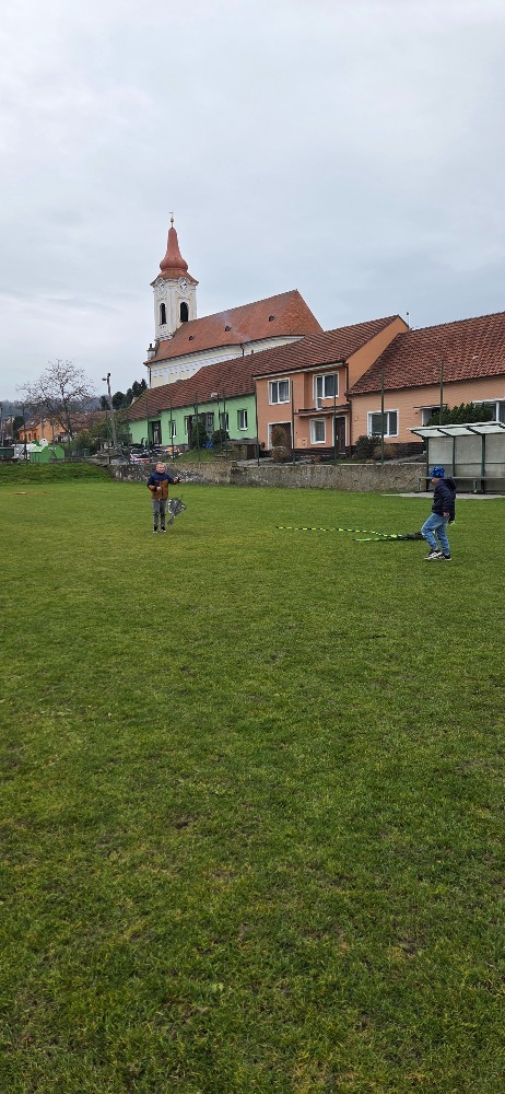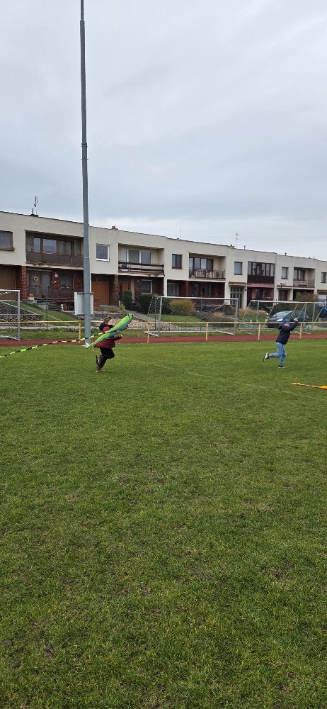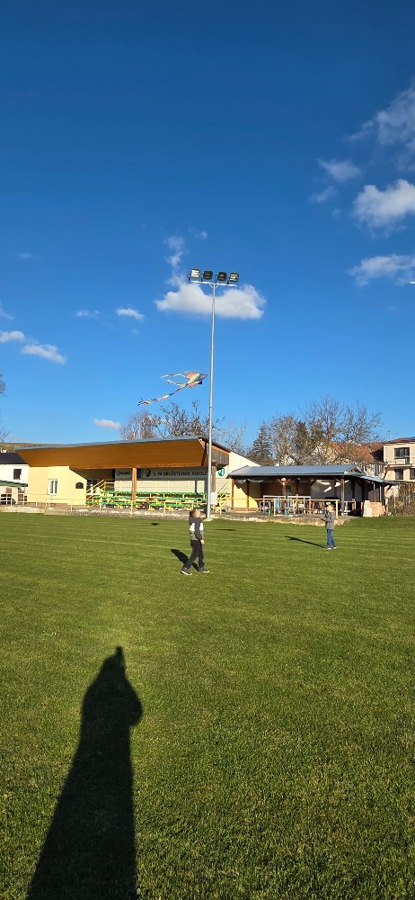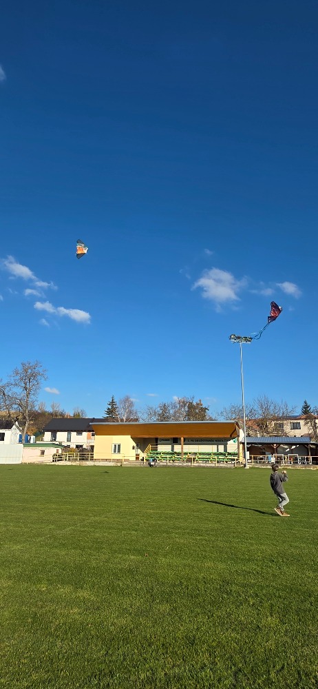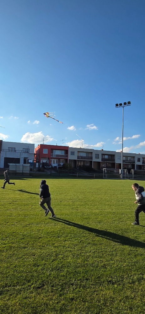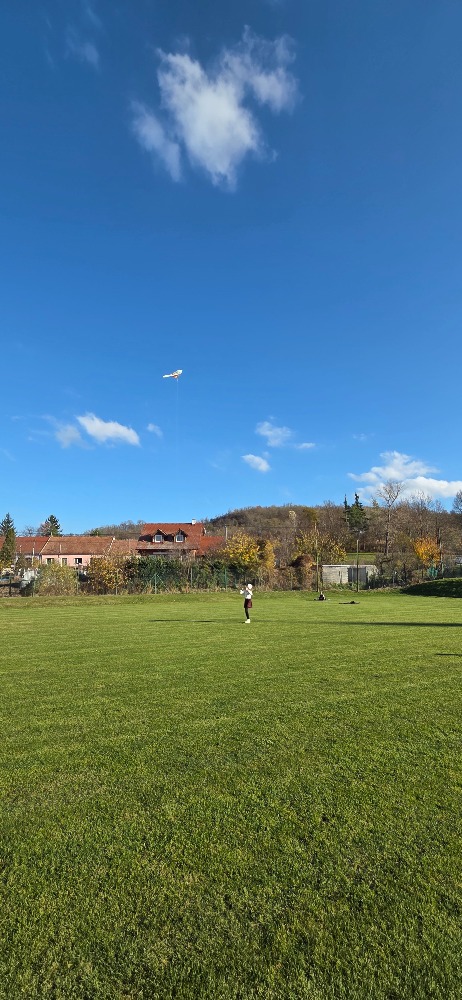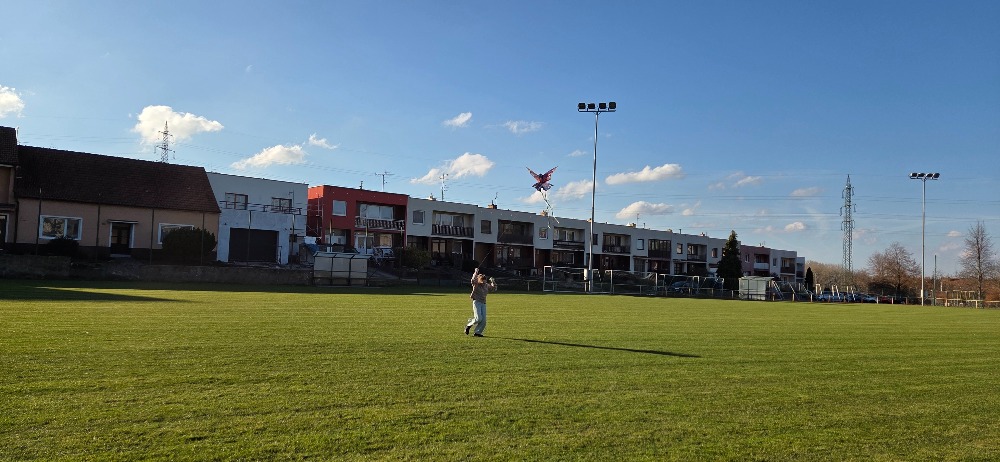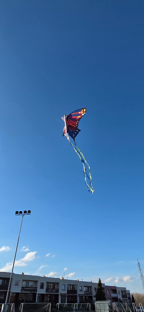 Děti si na hřišti pouštěly draky, které si přinesly z domu.