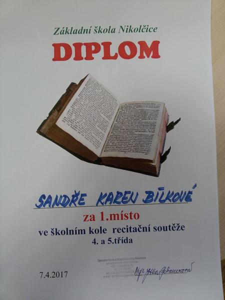 Recitační soutěž - školním kolo: 7.4.2017