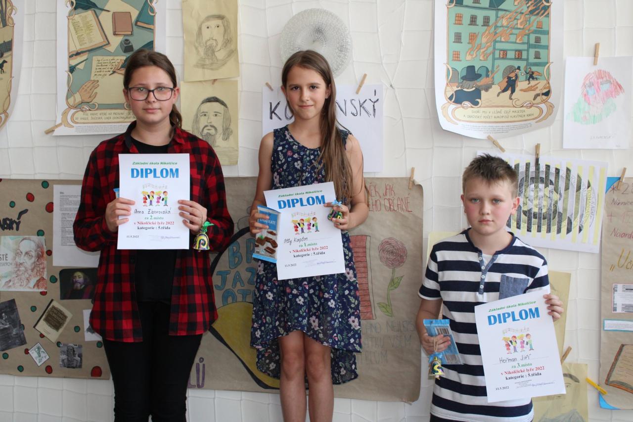 Pěvecká soutěž Nikolčická lyra proběhla ve středu 11.5. za účasti zpěváků ze škol v Křepicích, Velkých Němčicích, Těšanech, Boleradicích a Nikolčicích.