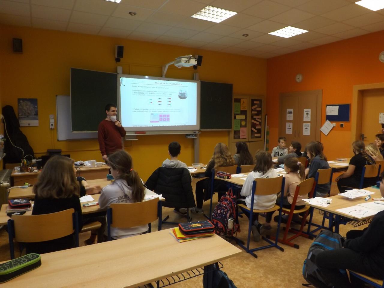 VII. třída - s tématikou „Minecraft a Umělá inteligence pomáhá lidem ". Žáci si mohli vyzkoušet programování v Minecraftu.
