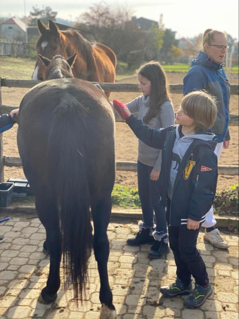 V pátek 11.11.2022 se 5.třída vydala do Hustopečí užít si výlet za nejaktivnější třídu v loňském školním roce. Žáci navštívili DDM Pavučina, kde se ve dvou výukových programech dozvěděli spoustu nových informací a zkusili si také několik zajímavých činností. V programu Koňský svět si vyzkoušeli čištění stáje, hřebelcování koní a na závěr se každý svezl. V programu Od ovečky ke klubíčku nakrmili ovečky, zkusili si česání vlny, výrobu provázku z vlny, podívali se, jak se pracovalo s kolovrátkem a vyrobili si plstěním vlny srdíčko. Pobyt v Pavučině zakončili opékáním špekáčků a odpočinkem na prolézačkách v areálu Pavučiny. Sice cukrárnu nestihli, ale den si užili opravdu pěkně. Domů jse vrátili sice unavení, ale obohaceni novými informacemi, s novými zkušenostmi a plni hezkých zážitků.