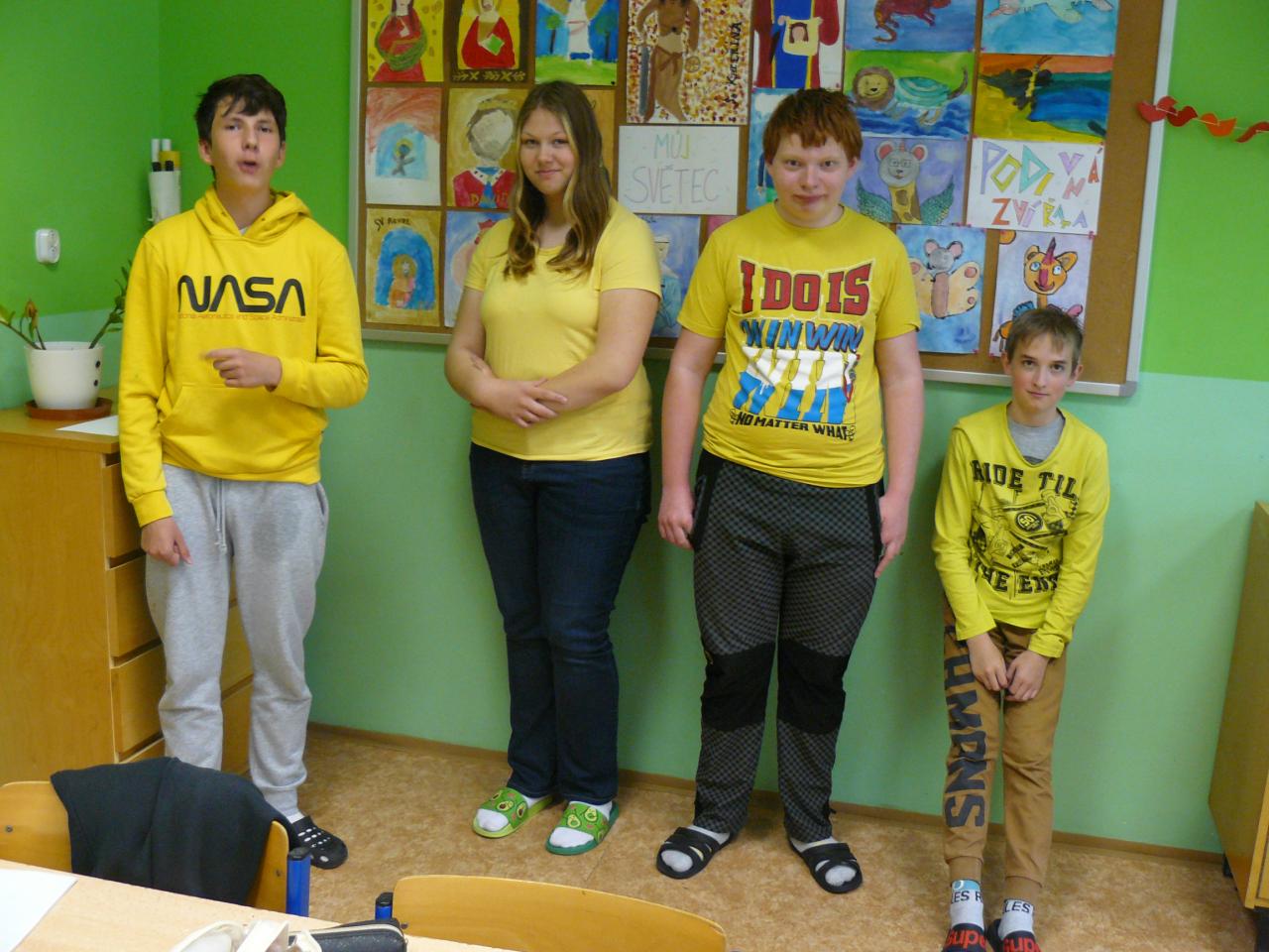 Žáci přišli tento den oblečeni ve žluté barvě.