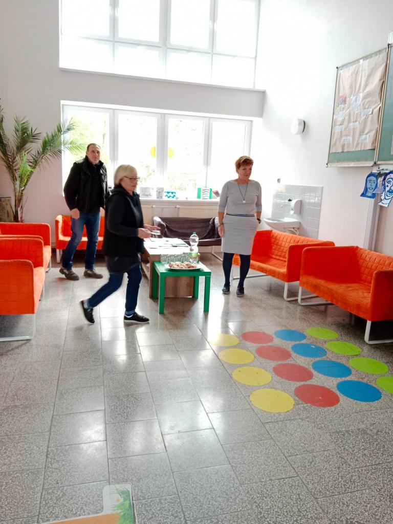 Dne 26.4.2023 navštivili naši školu senioři z Nikolčic. Prohlédli si výstavu Kapka porozumění a paní ředitelka je provedla prostory školy.