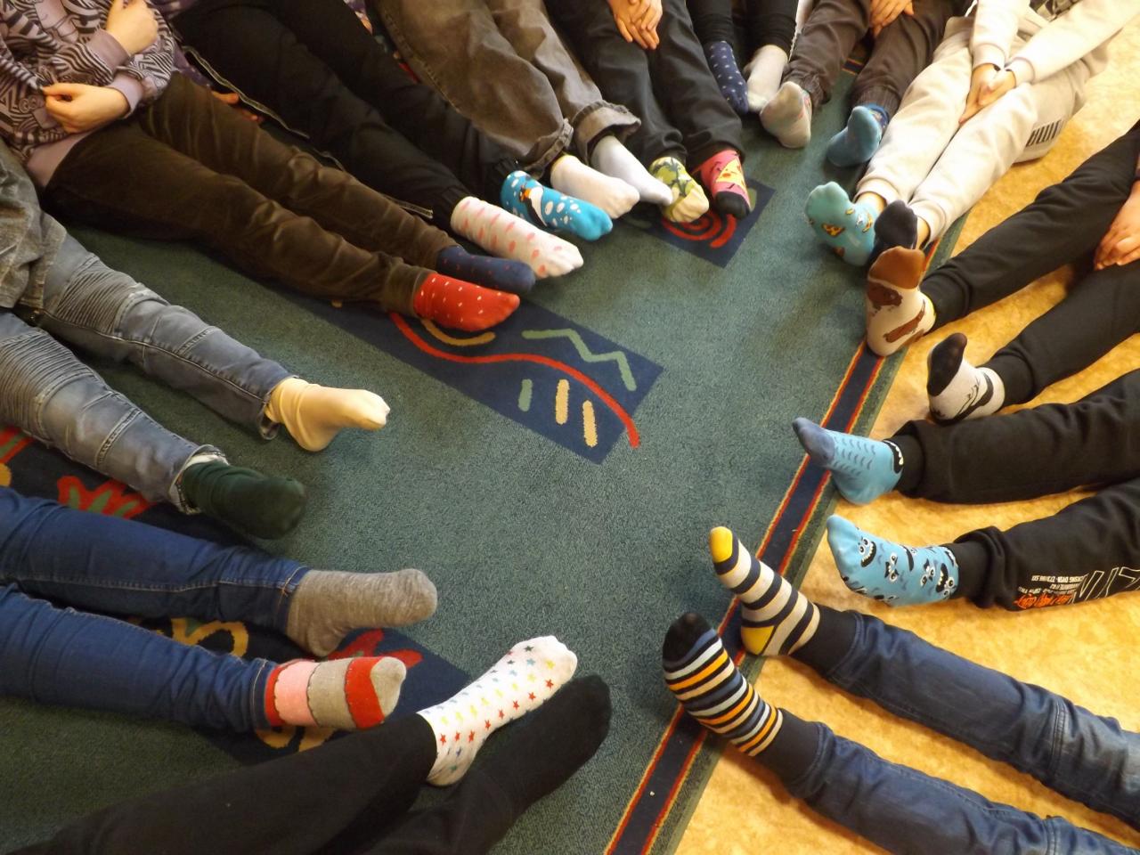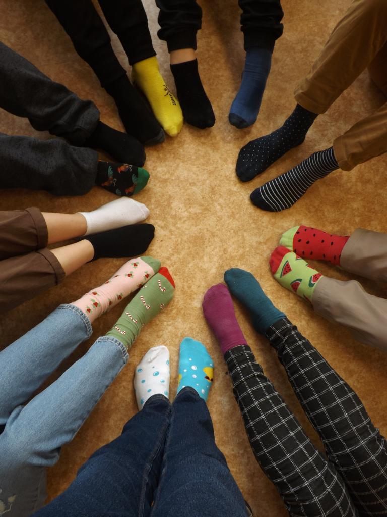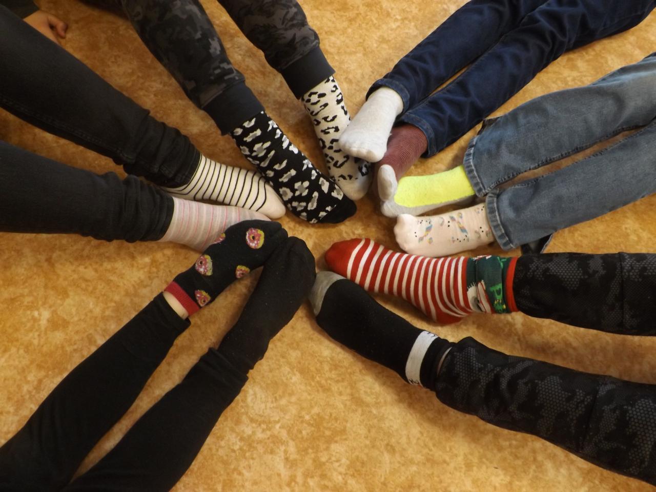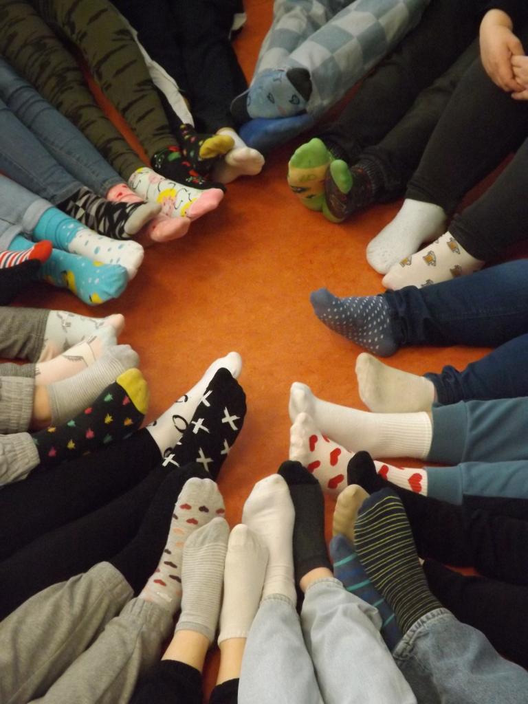 Žáci i učitelé si oblékli tento den na každou nožku jinou ponožku.