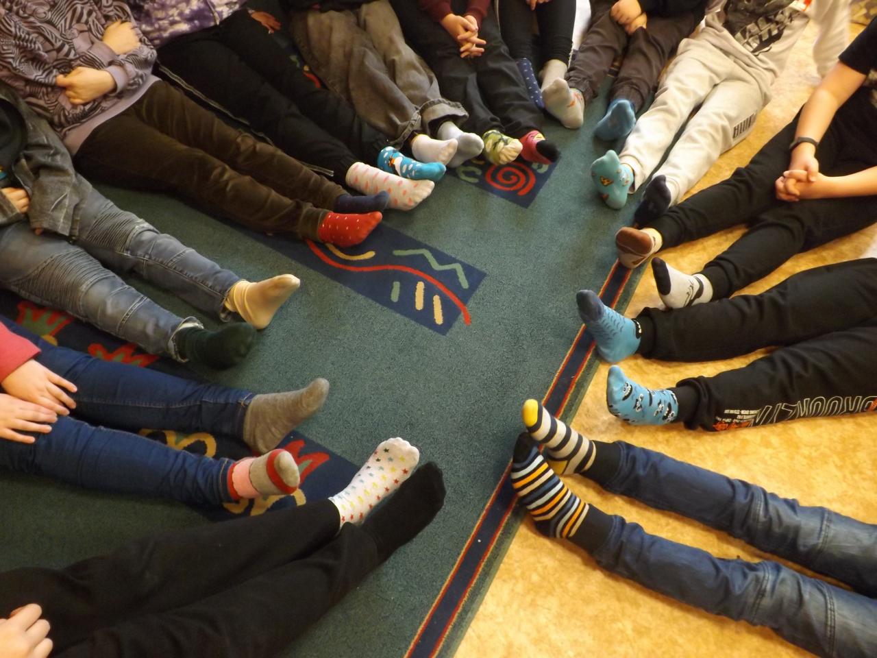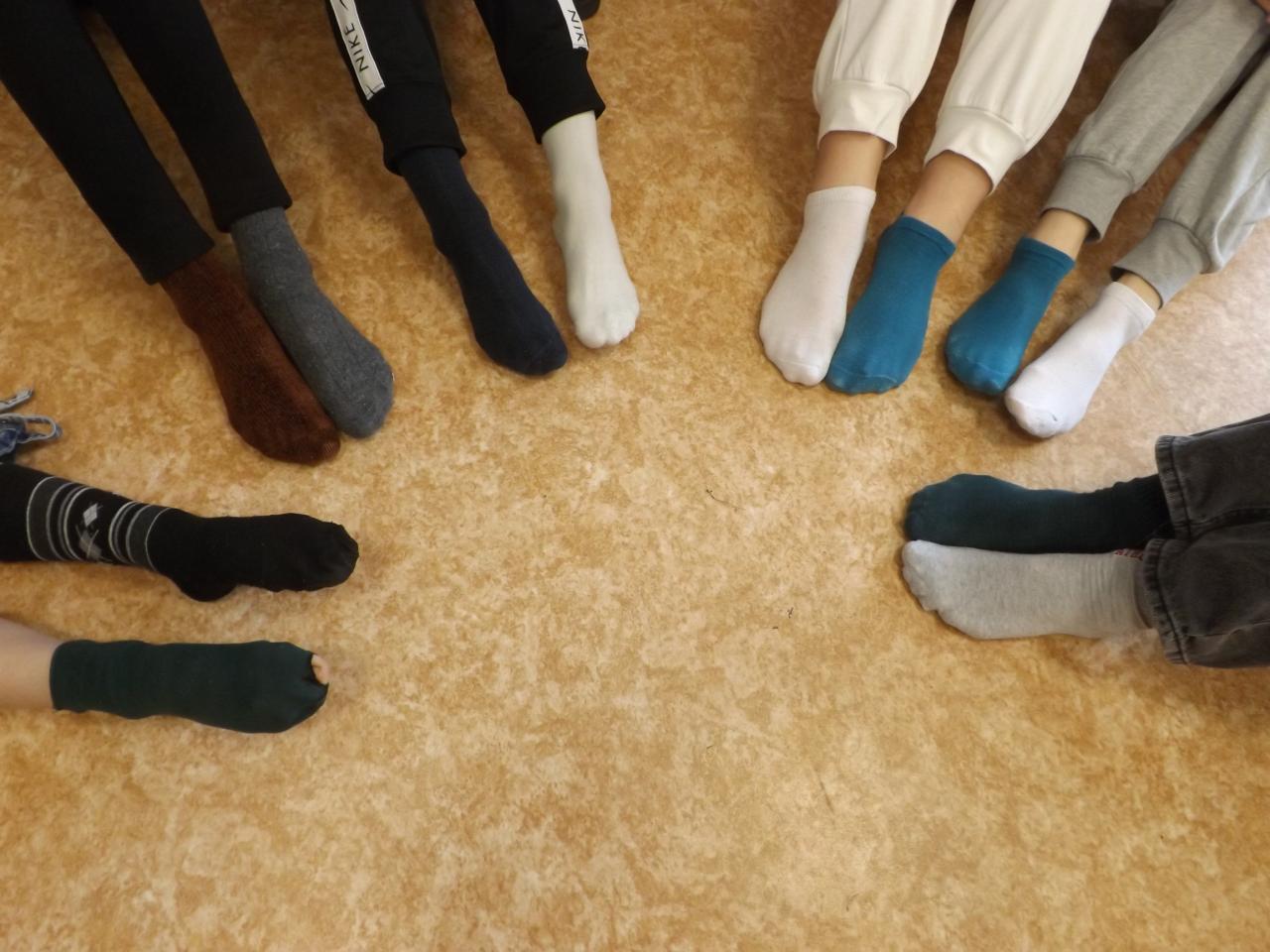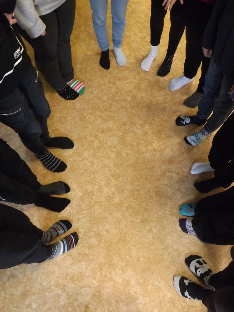 Žáci i učitelé si oblékli tento den na každou nožku jinou ponožku.