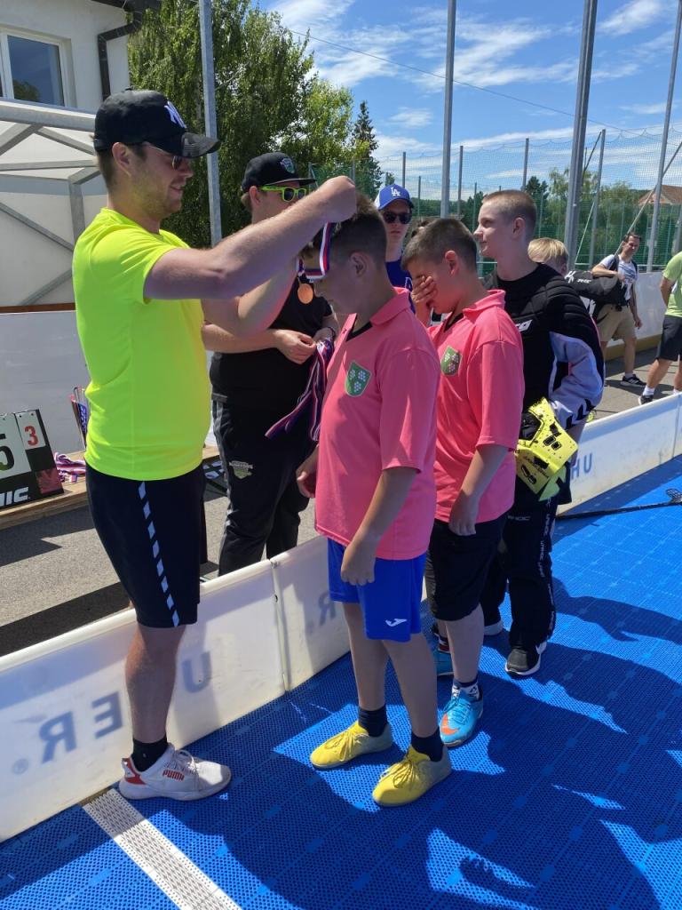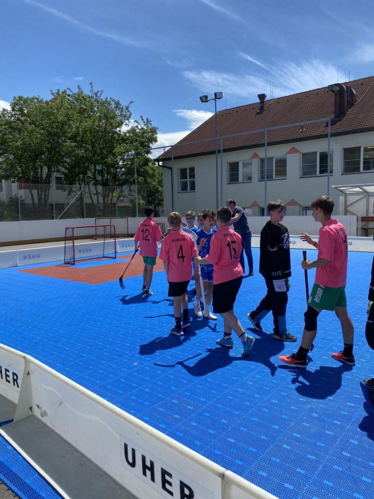Náš tým měl velké ambice, jelikož předminulý rok vybojoval na tomto turnaji 2. místo. V základní skupině jsme nejprve porazili ZŠ Hovorany 3:2, další zápas jsme podlehli místnímu gymnáziu 4:6 a poslední zápas v základní skupině skončil 7:5 v náš prospěch. Celkově jsme se ve skupině umístili na 2. místě. V play-off naši žáci podali krásný výkon, kdy nejprve ve čtvrtfinále jasně porazili ZŠ Klobouky u Brna 11:1 a v semifinále ZŠ Hovorany 7:5. Ve vyrovnaném finále jsme uhráli proti ZŠ Dambořice remízu 5:5, o vítězi mělo rozhodnout až trestné střílení. Nájezdy jsme prohráli 0:1 a obsadili krásné 2. místo