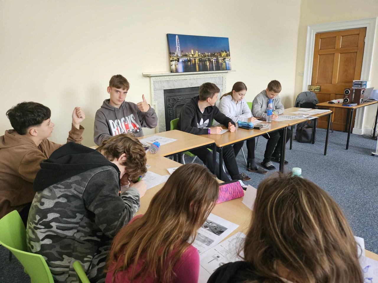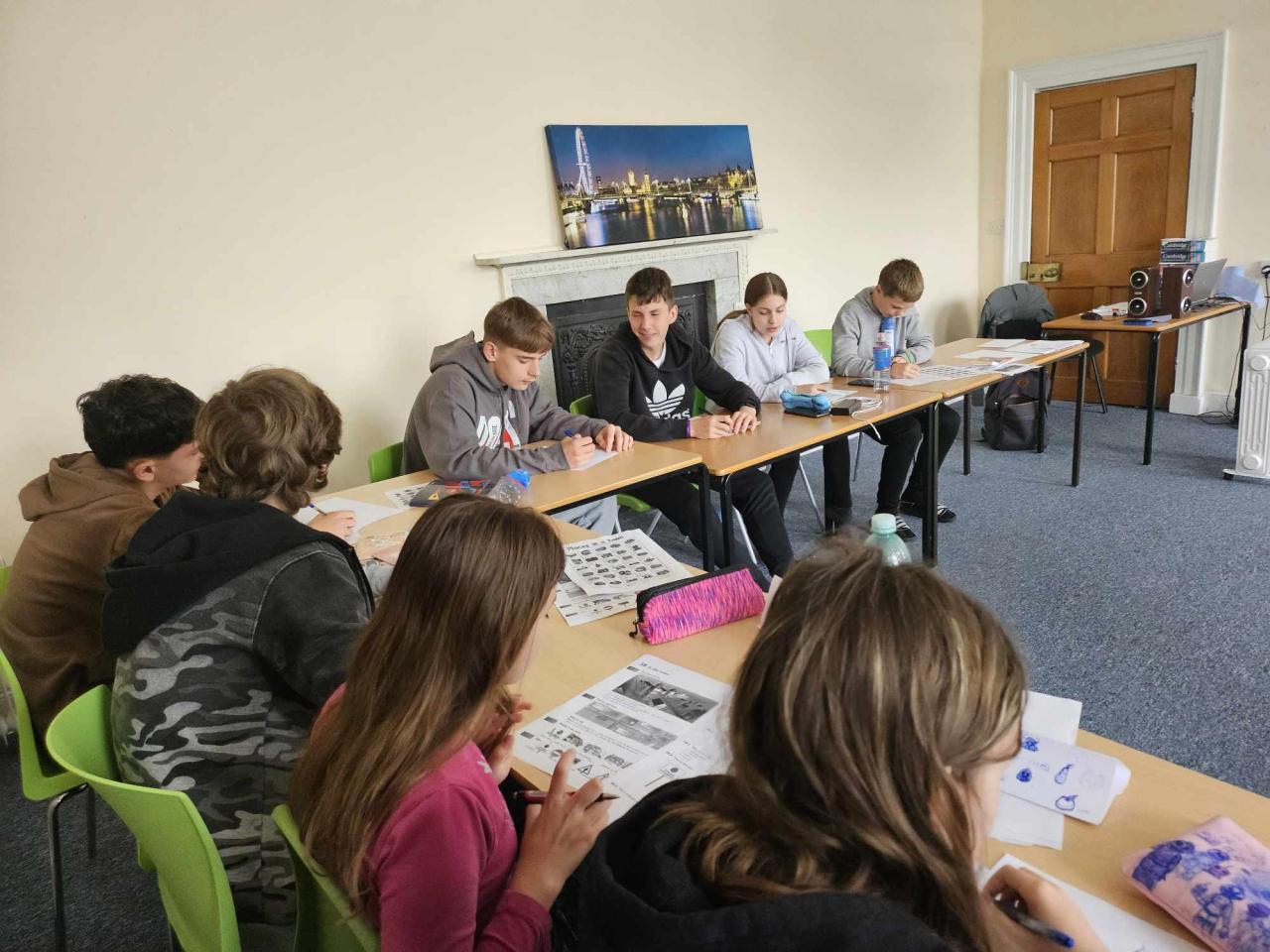 5.den v Anglii - právě se poctivě učíme o zajímavostech a historii Anglie. Pracujeme ve skupinách a zdokonalujeme se v anglickém jazyce dle úrovně znalostí. Snídaně byla opět vynikající.