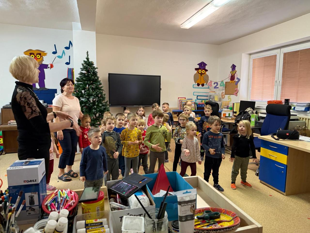 Mikuláš s čerty a anděly v podání 9.třídy navštivili naši školu a školky ve čtvrtek 5.12.2024 dopoledne.