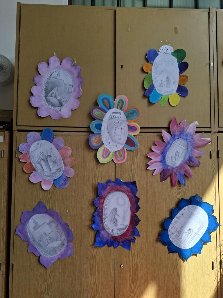 Díla vytvořili žáci ZŠ Nikolčice pod vedením paní Mgr. Slavíkové v rámci výtvarné a estetické výchovy.