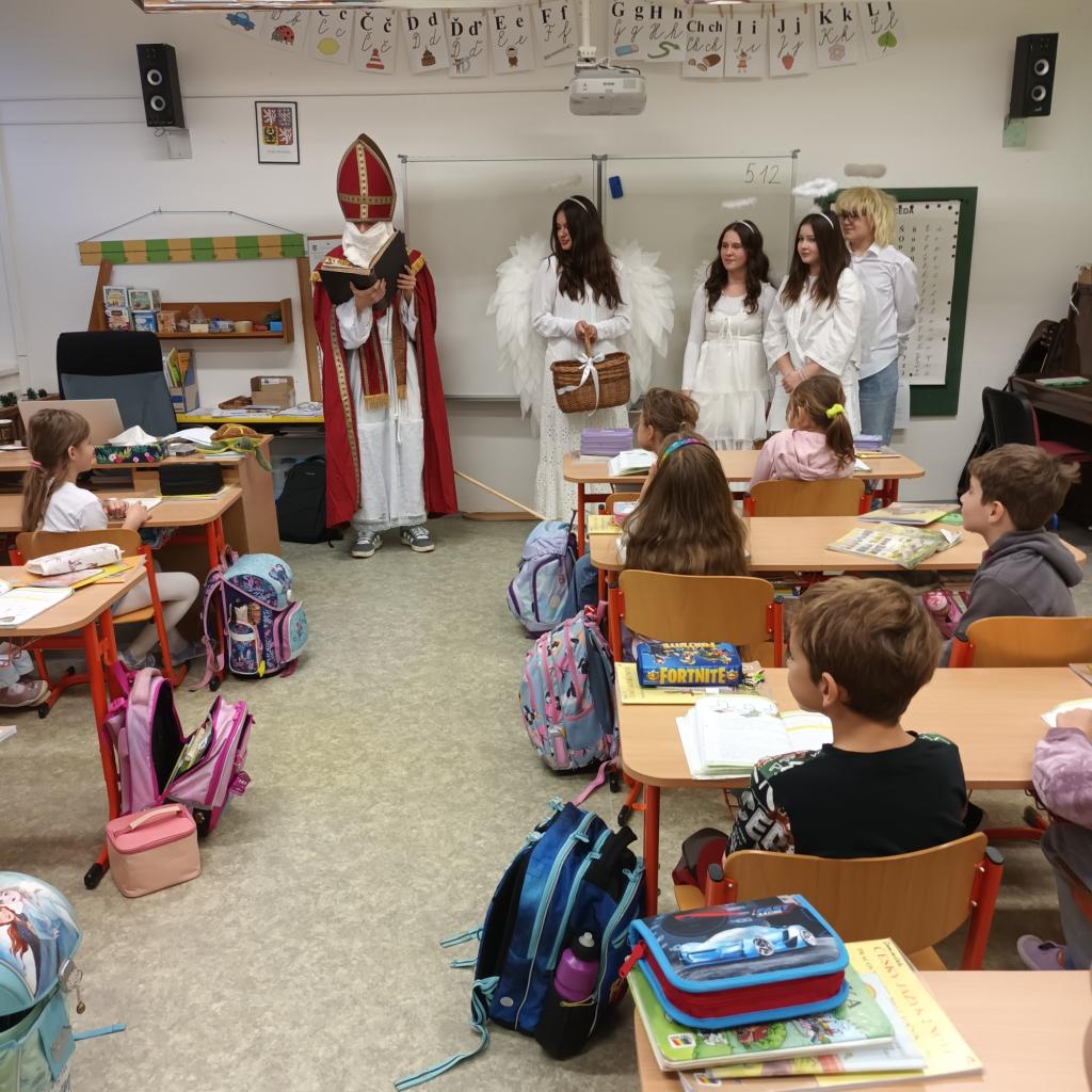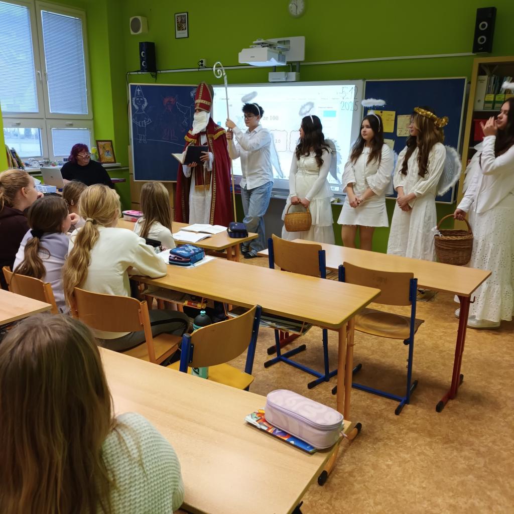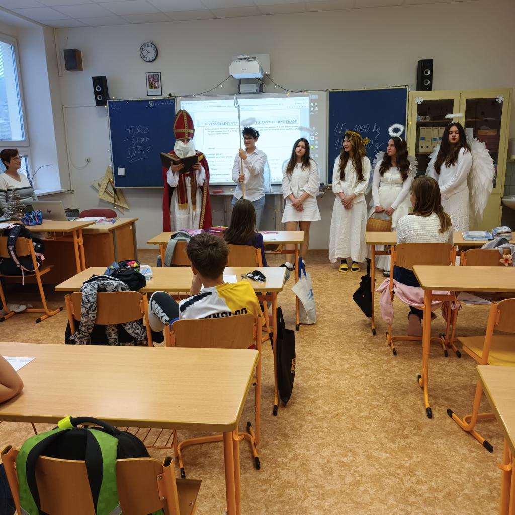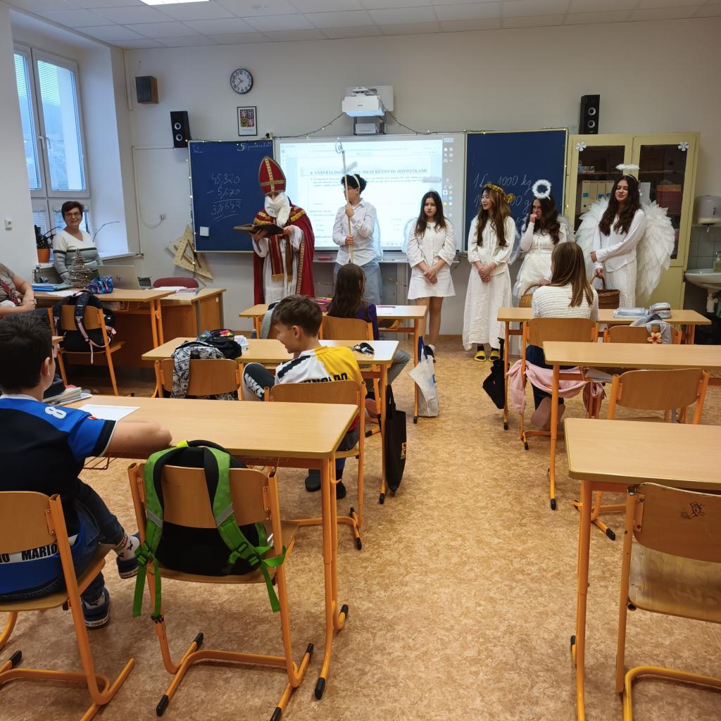 V páetek 5.12. navštívil naši školu Mikuláš s anděli a čerty.