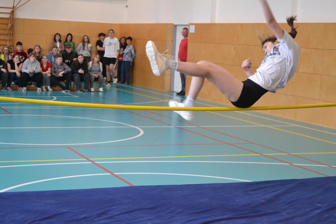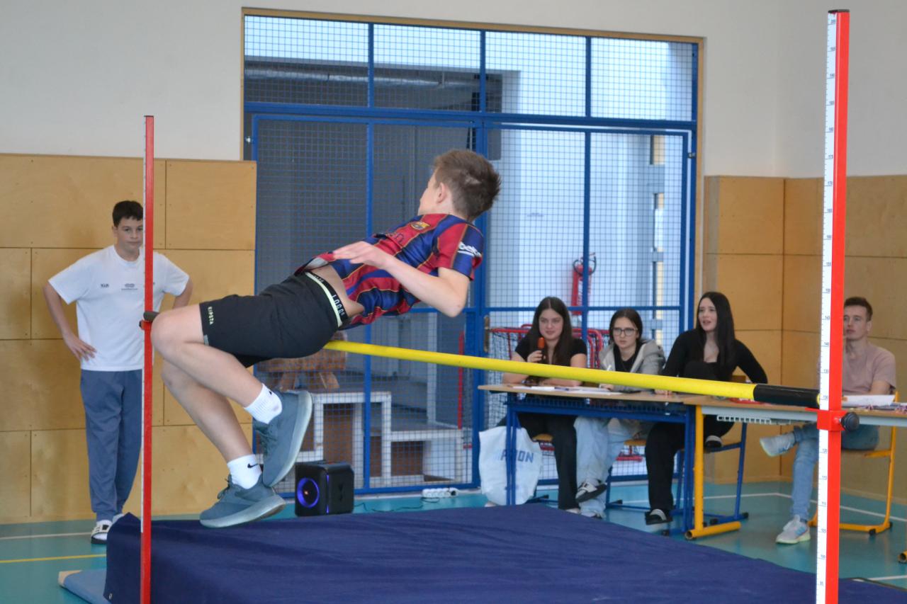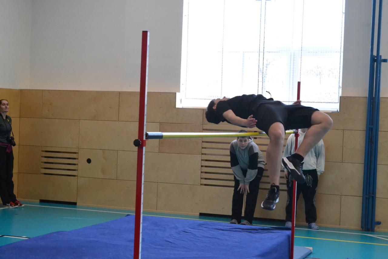 Nikolčické laťky, soutěže ve skoku vyskokém, která proběhla ve čtvrtek 5.3.2026, se zúčastnili žáci domáci školy a ze škol v Těšanech a ve Velkých Němčicích.