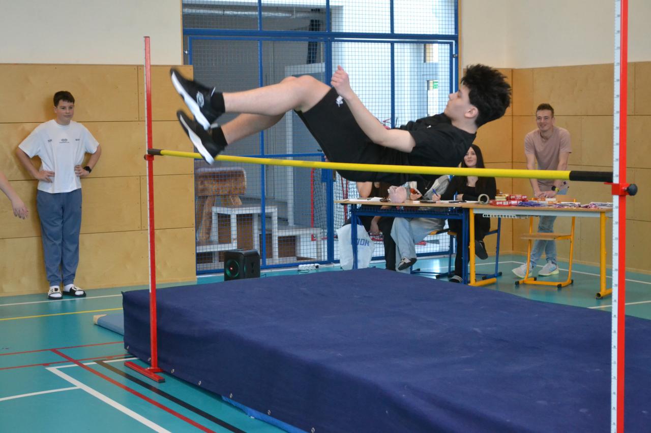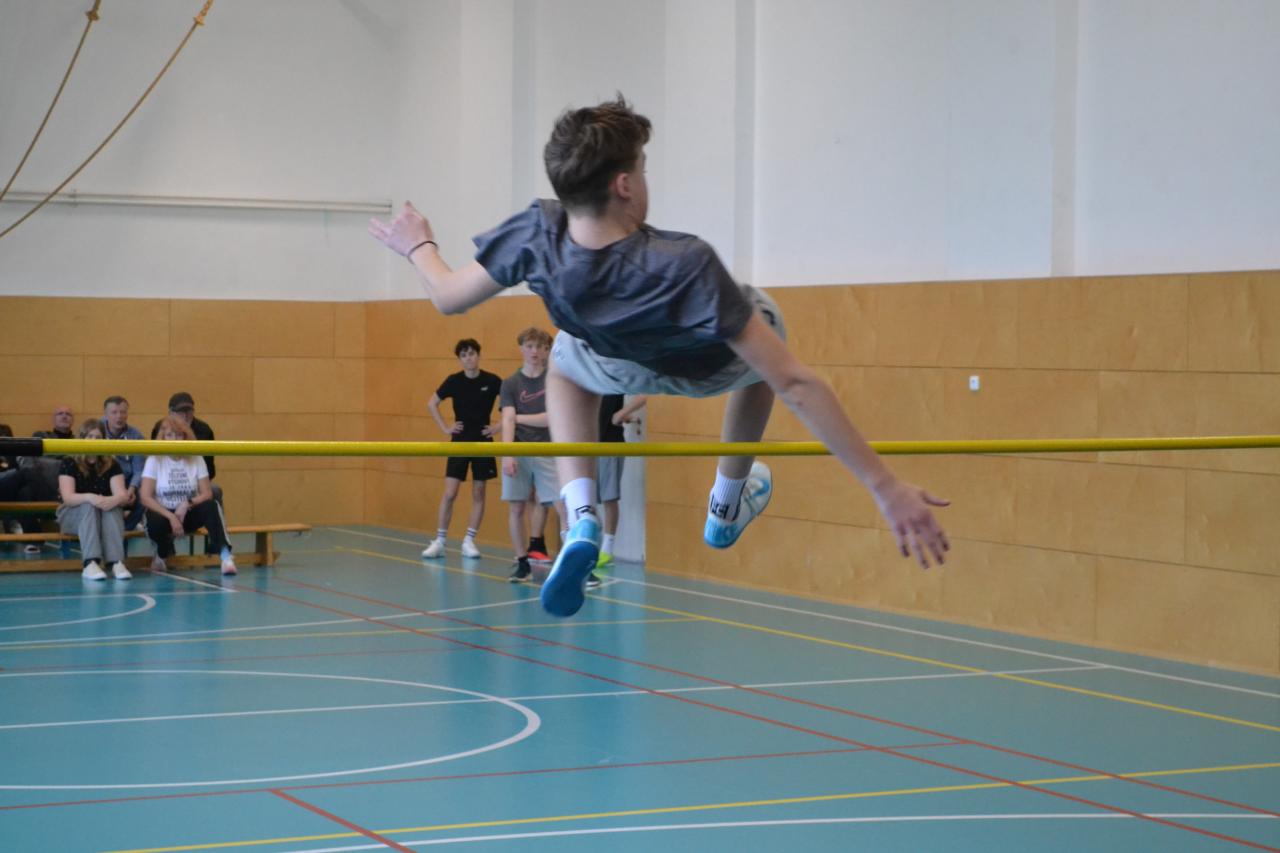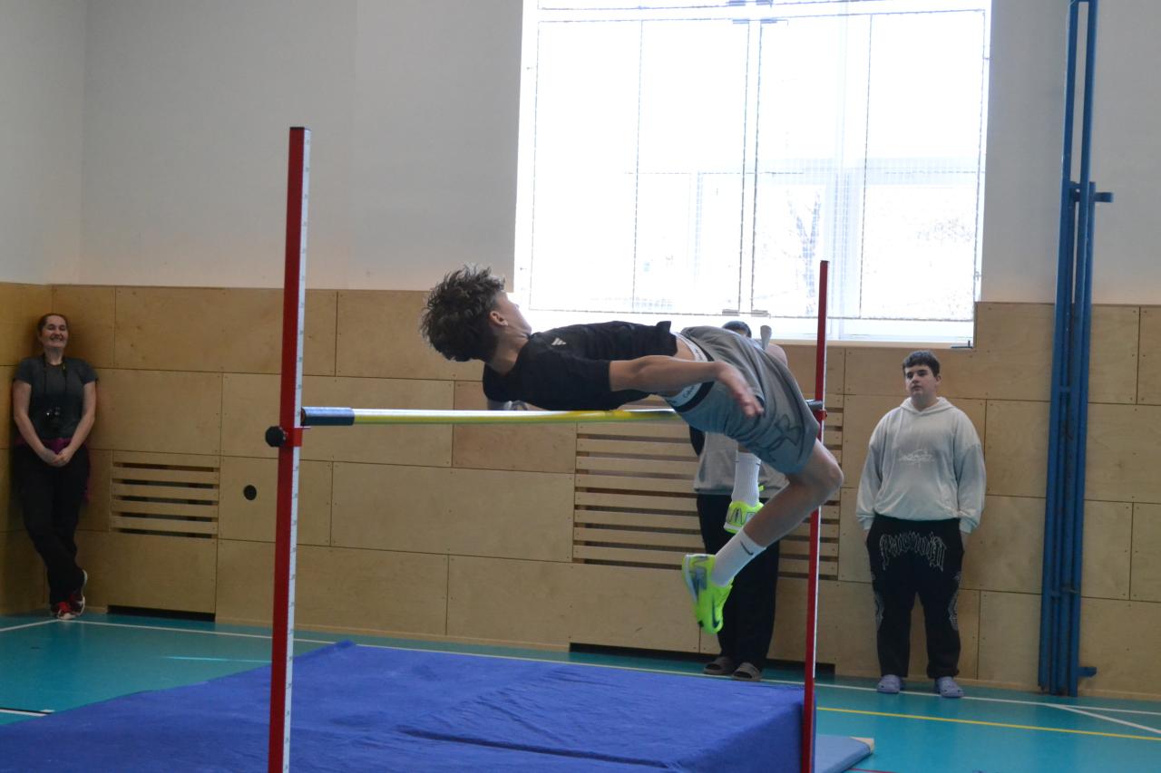 Nikolčické laťky, soutěže ve skoku vyskokém, která proběhla ve čtvrtek 5.3.2026, se zúčastnili žáci domáci školy a ze škol v Těšanech a ve Velkých Němčicích.