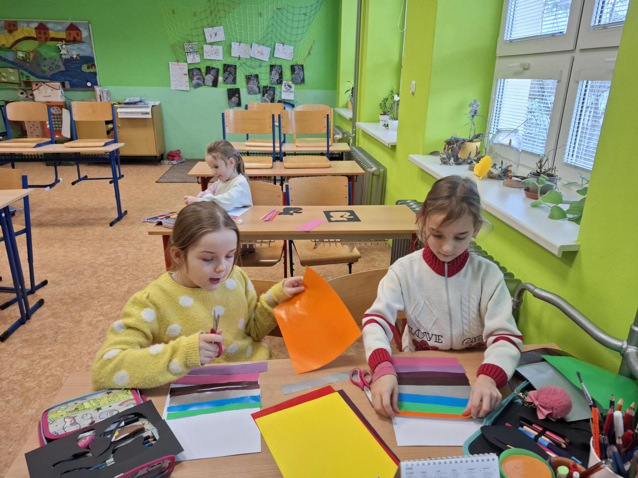 V pondělí 17. 2. si žáci vyrobili krásné barevné kočičky.