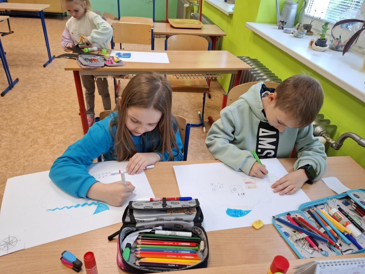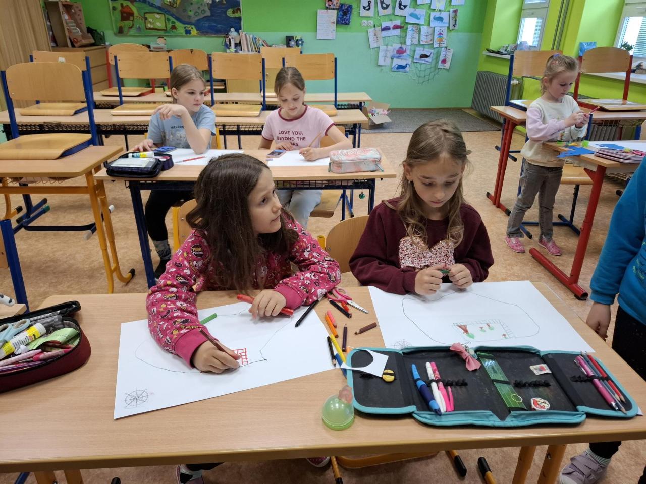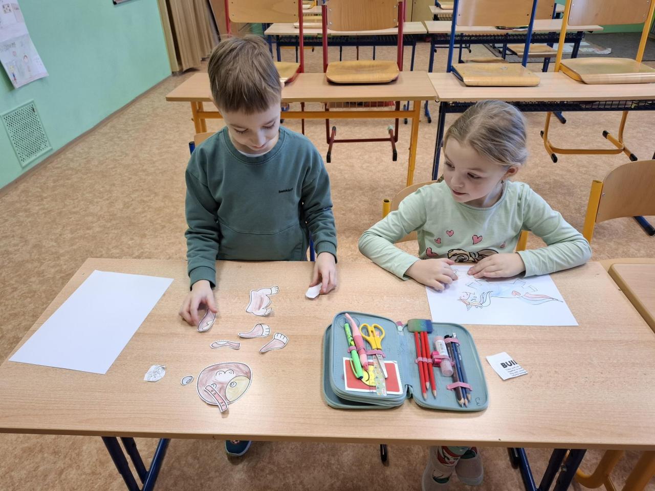 V pondělí 20. 2. žáci skládali jednotlivé části obrázku a dále obrázek dotvořili dle fantazie.