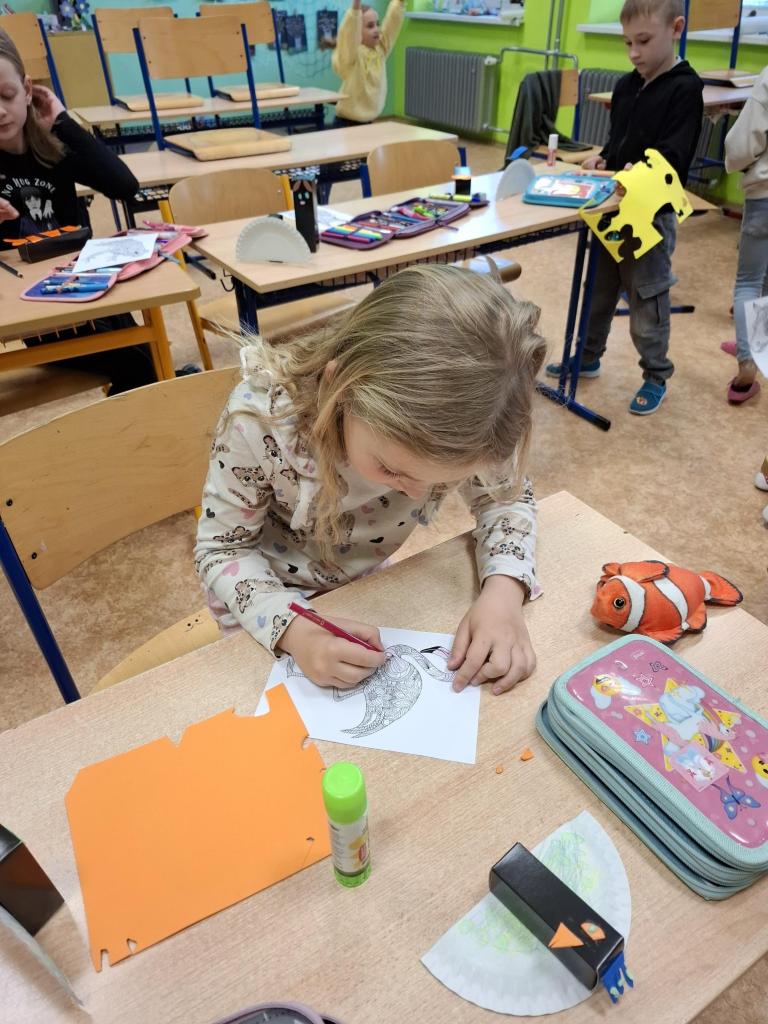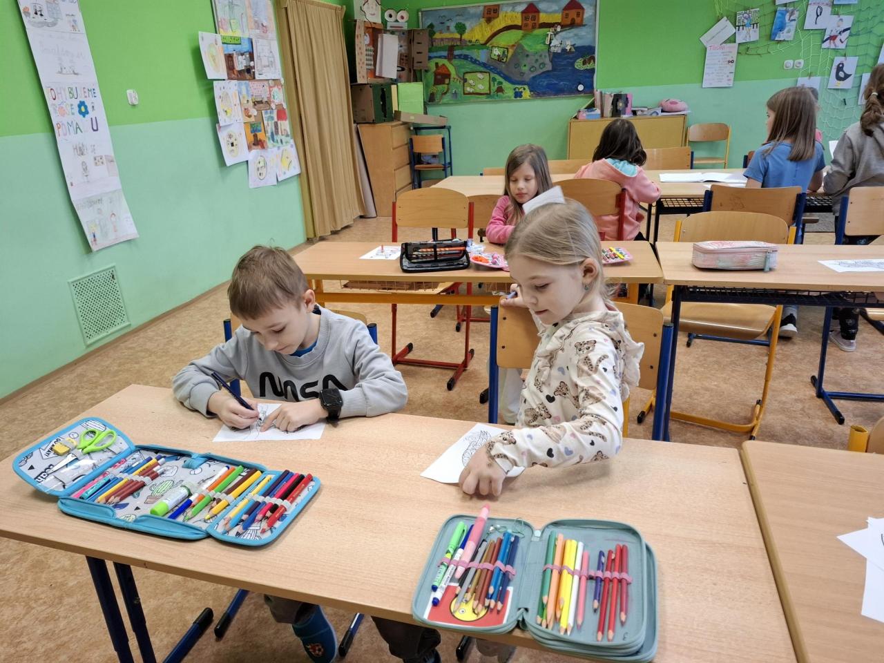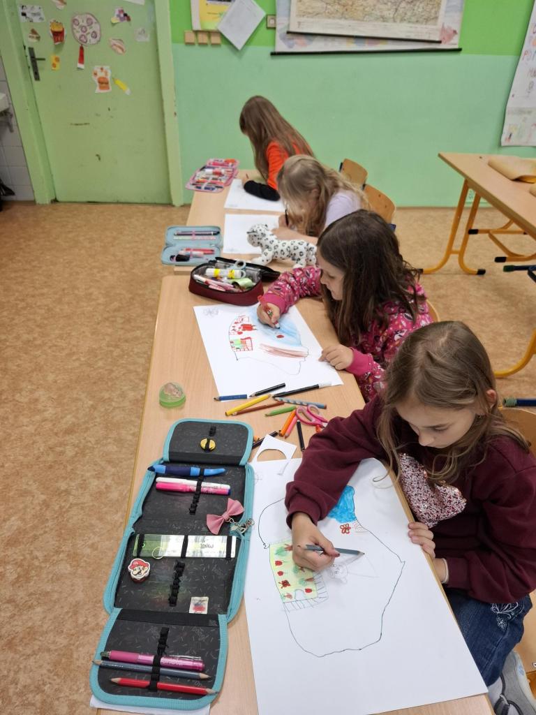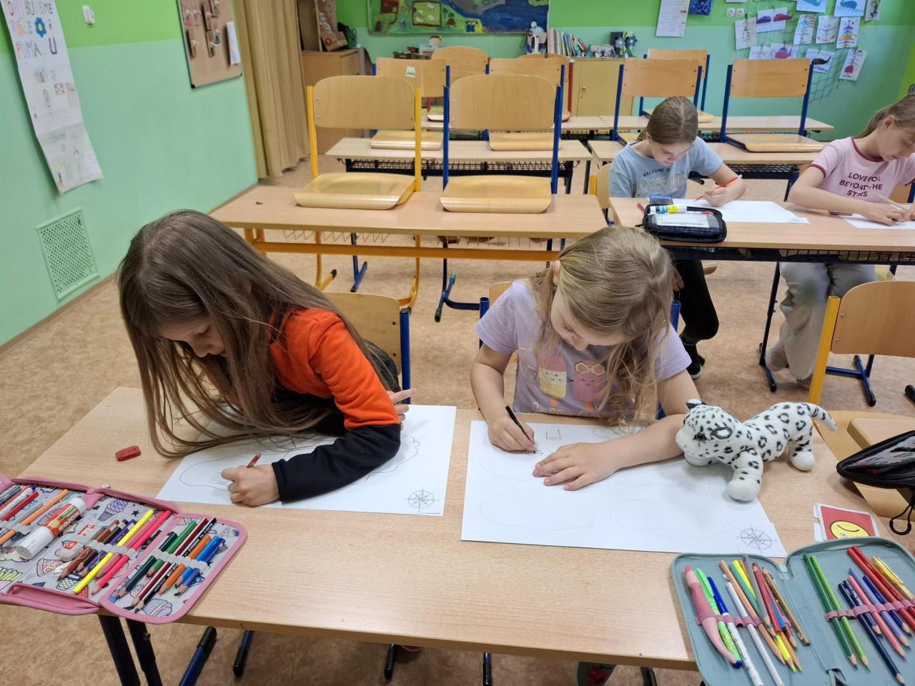 V pondělí 20. 2. žáci skládali jednotlivé části obrázku a dále obrázek dotvořili dle fantazie.