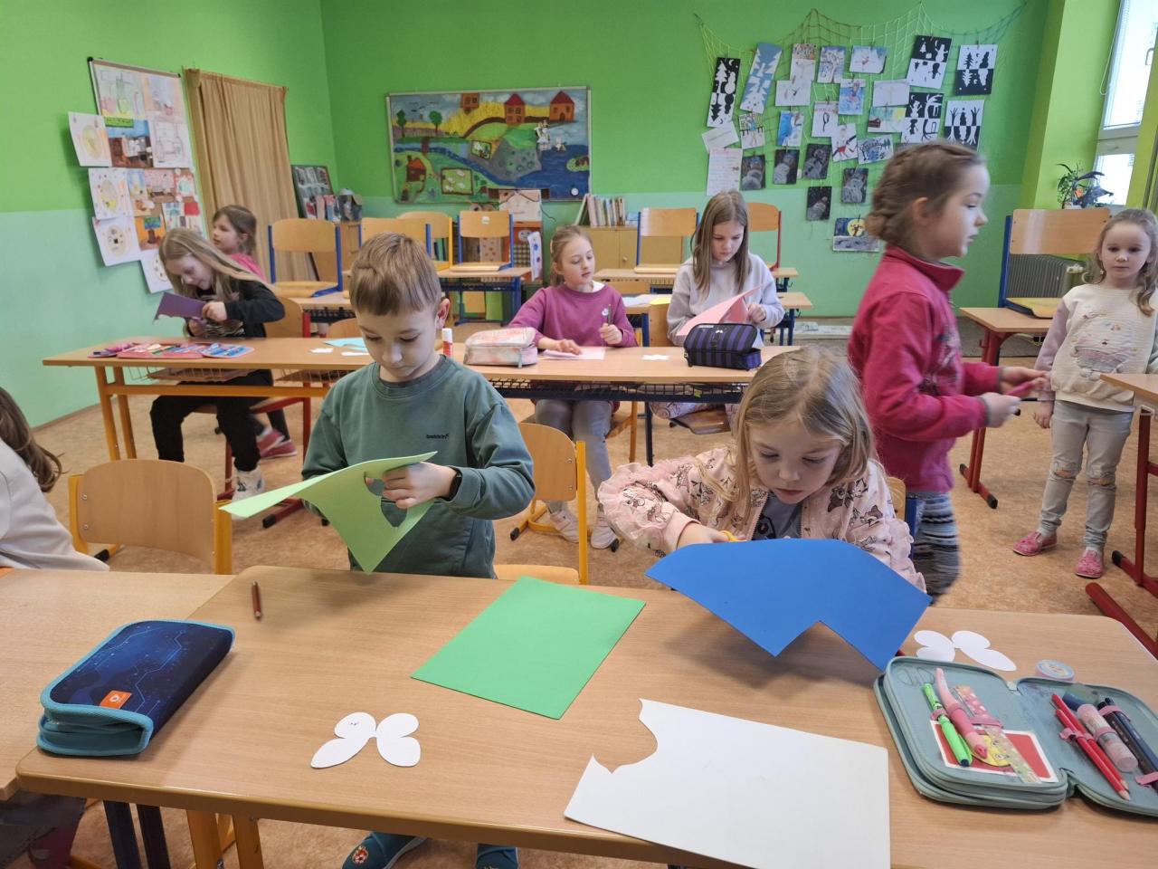 V pondělí 31. 3. žáci vytvářeli motýlky, poté následovala tvorba dle fantazie.
