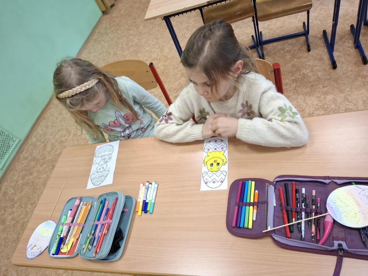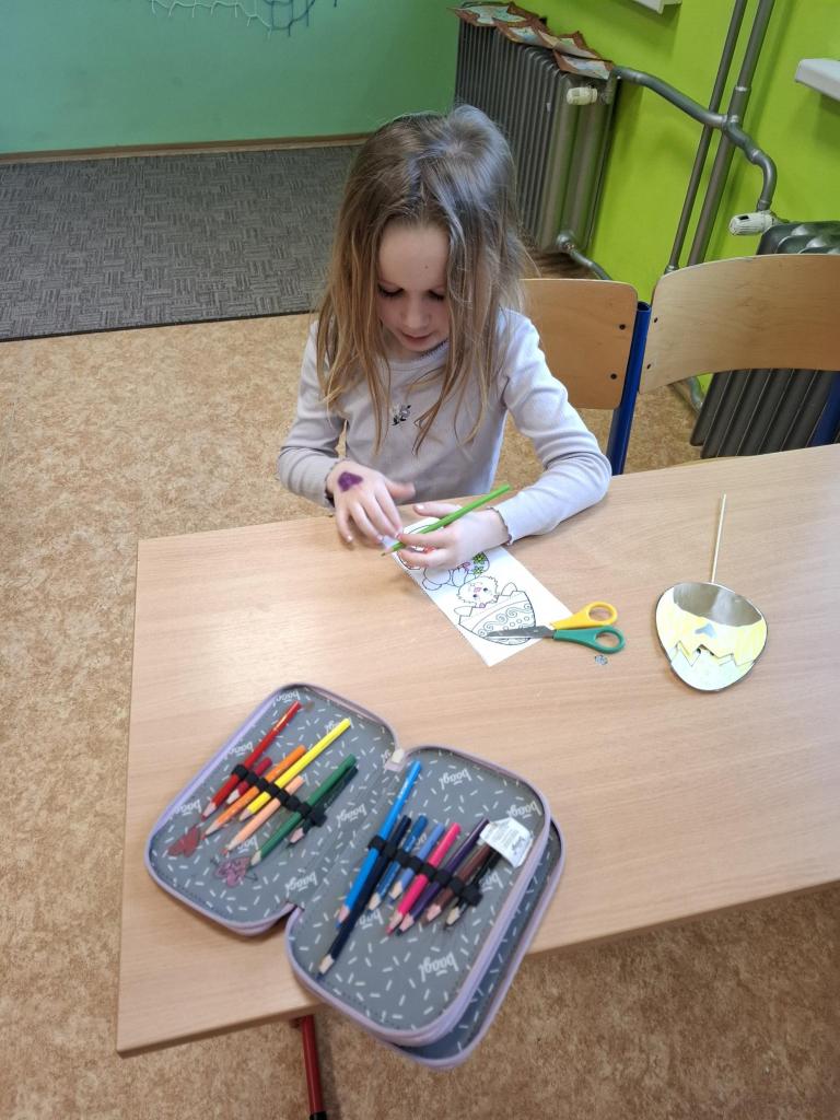 V pondělí 7. 4. proběhlo velikonoční vytváření - kuřátko klubající se z vajíčka.