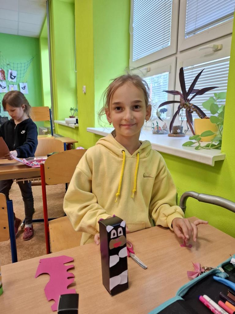 V pondělí 12. 5. žáci tvořili páva z krabičky, dále navrhovali krabičky dle fantazie.